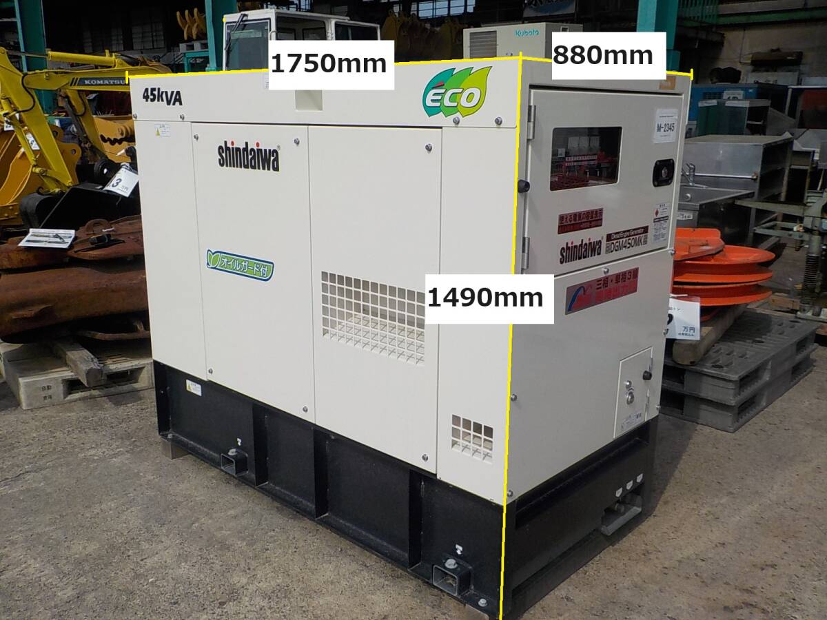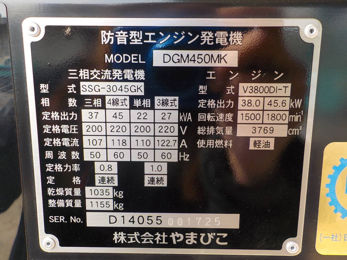 岡山発1630007500024※使用頻度少●新ダイワ●防音型エンジン発電機●DGM450MK●低アワー●三相交流発電機●中古