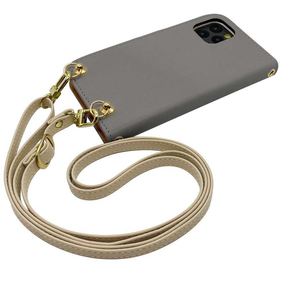Xperia 5 IV SO-54C SOG09 スマホショルダー(手帳アッシュグレー×ストラップ:クリーム)カバー 手帳 くすみカラー