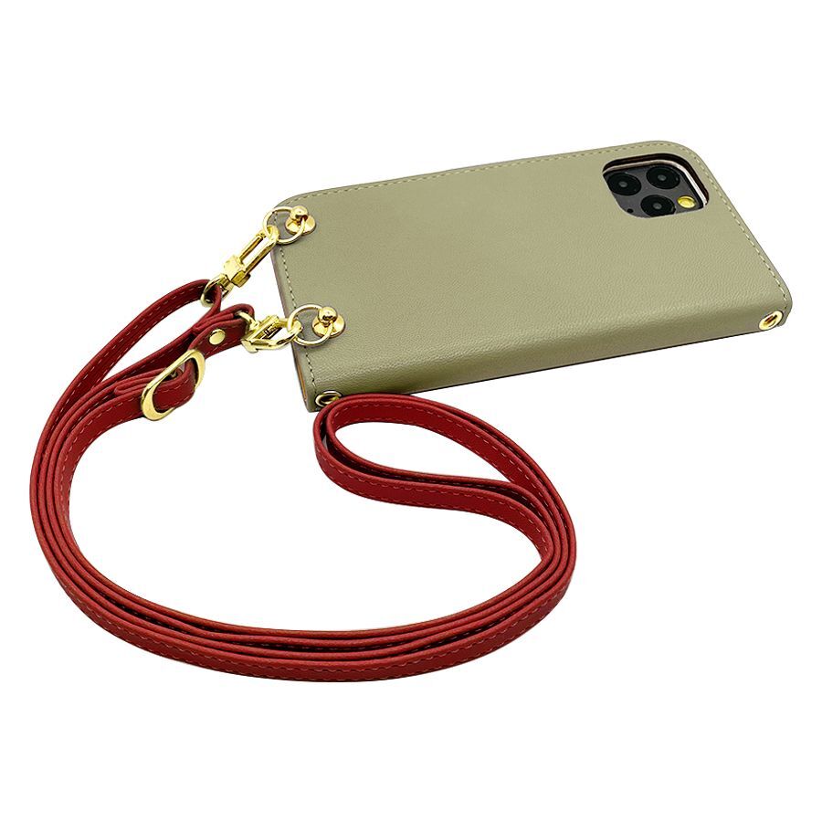Xperia 5 IV SO-54C SOG09 スマホショルダー(手帳ピスタチオ×ストラップ:ボルドー)カバー 手帳 くすみカラー