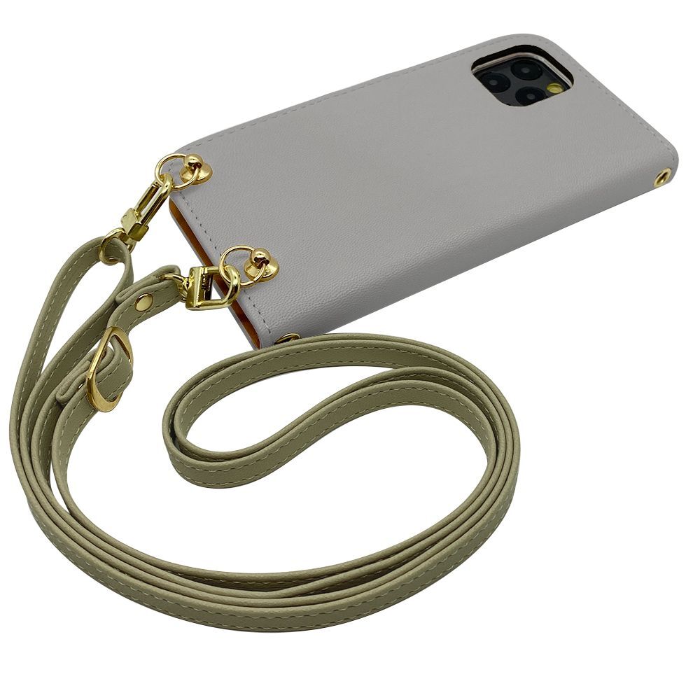 Libero 5G IV A302ZT ZTE リベロ5g4 スマホショルダー(手帳ライトグレー×ストラップ:ピスタチオ)カバー 手帳 くすみカラー
