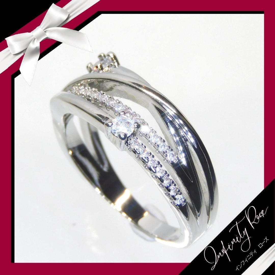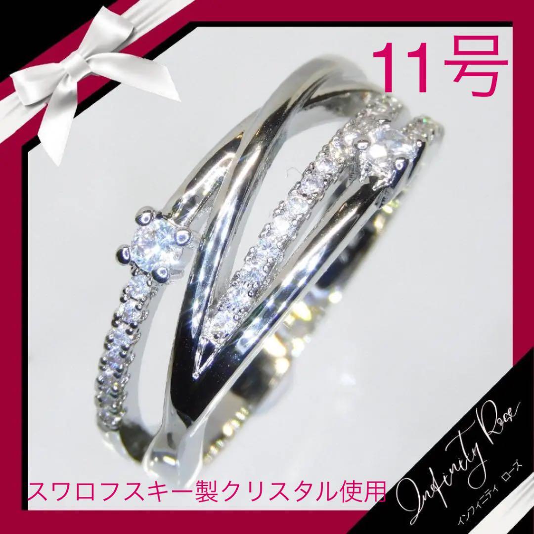 (1122)11号 天使のランダムクリスタル 太リング 爪留め指輪 スワロフスキー製クリスタル使用
