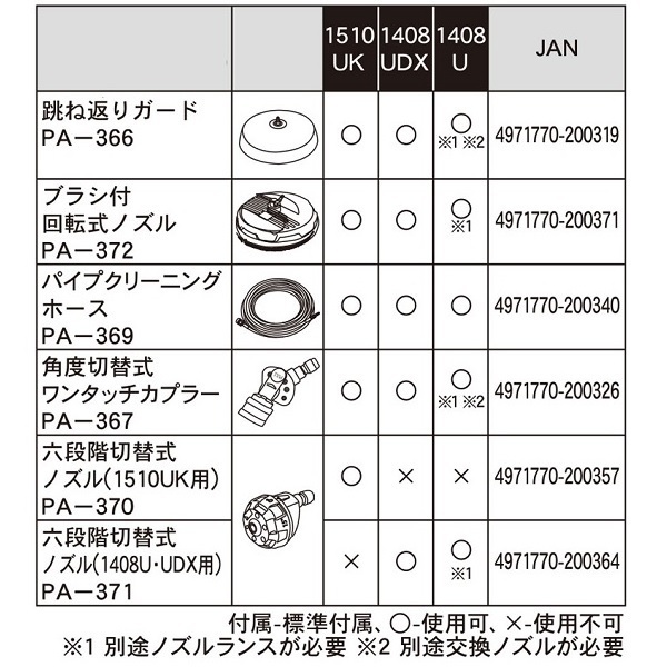 ・ご利用の高圧洗浄機が適合機種であるか確認の上、ご購入お願いいたします。