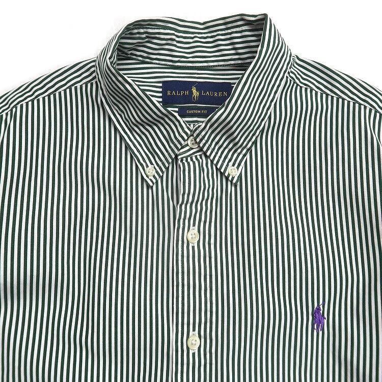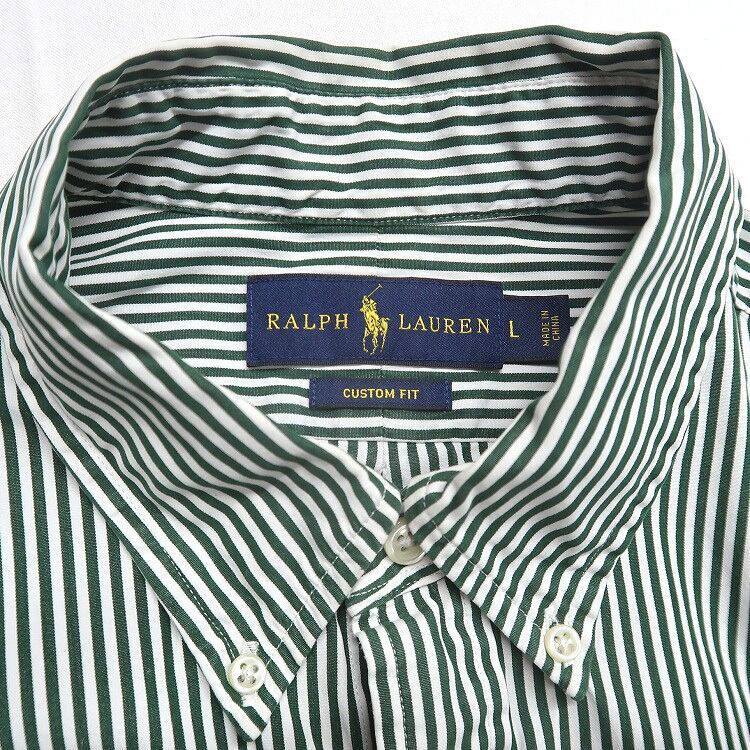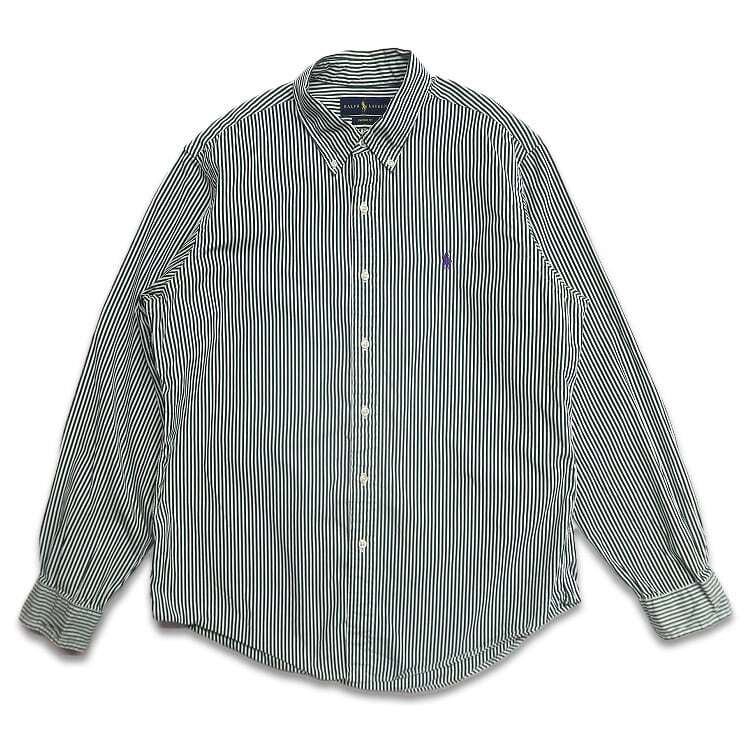 古着 ラルフローレン Ralph Lauren ボタンダウンシャツ 長袖 ストライプ グリーン 表記:L gd401932n w40309