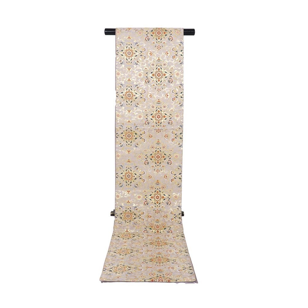 | 西陣織袋帯 薄い小豆色・金箔地 華文 仕立て上がり | |