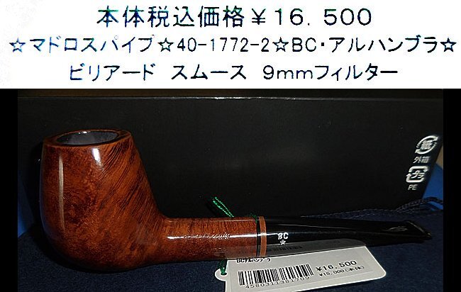 現物を写真撮影、この商品が届きます。BCパイプ アルハンブラ ビリアード。スムース仕上げの9mmフィルター仕様タイプ。煙道の先端が火皿の底に達しており、たばこ葉の完全燃焼にて至福の一時が楽しめる。長さ143mmx高さ49mmx幅39mmx火皿径19mmx深さ41mmx重さ46g。ビンゴが出品している全ての商品は、店頭販売、他オークション販売、ショッピング販売等重複し販売しております。時間差で売れ切れや、出荷点検検等で傷が付いていたり破損している事もあります。従いまして、お買い上げ頂きましても出荷出来ない場合も有りますので、予めご了承の上お買い求め下さい。尚、同じ型の商品が取り寄せ可能の場合は、改めてその旨お伝え致し、ご了承の際は数日お待ち頂く事になります。天然素材で作られているマドロスパイプ等は同じシェープでも木目が違いますのでご了承下さい。ご注文商品は他商品と同梱配送出来ますので、何個ご注文されても送料は1口分です。ご注文商品は他商品と同梱配送出来ますので、何個ご注文されても送料は1口分です。1.レターパック発送 ¥600 日時指定不可。(郵便レターパック)。2.宅配便発送税込み ¥880日時指定必須(沖縄/離島は別途価格)。必ず 受取日時 をご指定下さい。(例:15日 18~20 時必着)再配達防止の為。 (業者は当社にお任せ)。3.代金引換発送引手数料税込み ¥1、210 日時指定必須(沖縄/離島は別途価格)。 必ず 受取日時 をご指定下さい。(例:15日 18~20 時必着)再配達防止の為。(業者は当社にお任せ)。