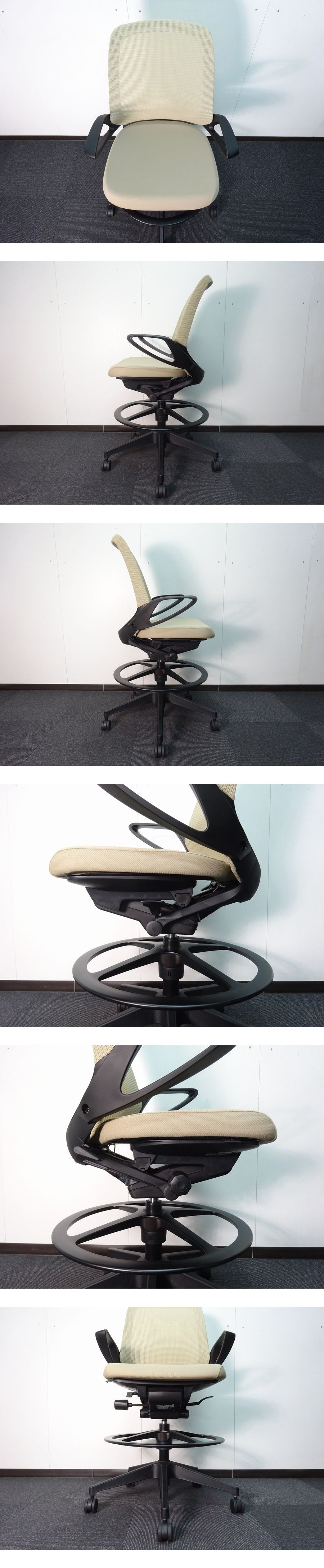 ・メーカー:イトーキ ・型番:KJ-186JVP-T1Y3 ・サイズ:W570(脚680)×D560~610×H1055~1275×SH610~830 単位(mm) ・本体、肘受け、フレームカラー:ブラック ・張地カラー:サンドイエロー ・脚カラー:ブラック ・定価:¥124,520 オフィスファニチャーブランド イトーキのノートチェア ハイポジションタイプ ループ肘付です。インテリア性へのこだわりとハイパフォーマンスの両立。オフィス空間のインテリア性が高まるなかで、細部までデザインを追求。 長時間着座にも対応できる優れた機能性とデザインの融合で、上質な心地よさを生み出しました。 カジュアルな空間にも調和するデザインを目指し、樹脂部分の露出を抑え、背のフレームまでファブリックで包み、インテリア性を高めました。また、コンパクトな設計の中にも、基本機能は充実。可動肘は3Dアームとなり、自然な体勢で作業することができます。あらゆる方向へ移動しやすいリング状のフットレスト付きで、メッシュ状のデザインが、浮遊感のある印象を与え、快適な座り心地を提供します。 ■仕様 ・背:メッシュ張り ・座:布地張り ・背ブラケット:強化ナイロン樹脂 ・肘当て:発砲ウレタン一体成型 ・肘受け:強化ナイロン樹脂 ・足掛けリング:アルミダイキャスト塗装仕上 ・脚:強化ナイロン樹脂 抵抗付ウレタン双輪キャスター付 ■機能 ・アンクルムーブ・シンクロロッキング ・シートアングルストッパー ・ロッキング強弱調節 ・ベンディングシート ・ガス上下調節 ・座の奥行調節 ・可動肘 ■状態 ・こちらの商品は未使用品となります。運搬時の若干のスレはございますが、目立つキズなど無くとても綺麗な状態です。この機会にオフィス、ご自宅にいかがでしょうか! (※未使用とは…商品を開封し、設置等しましたが一度も使用せず保管していた商品となります。) | ||||