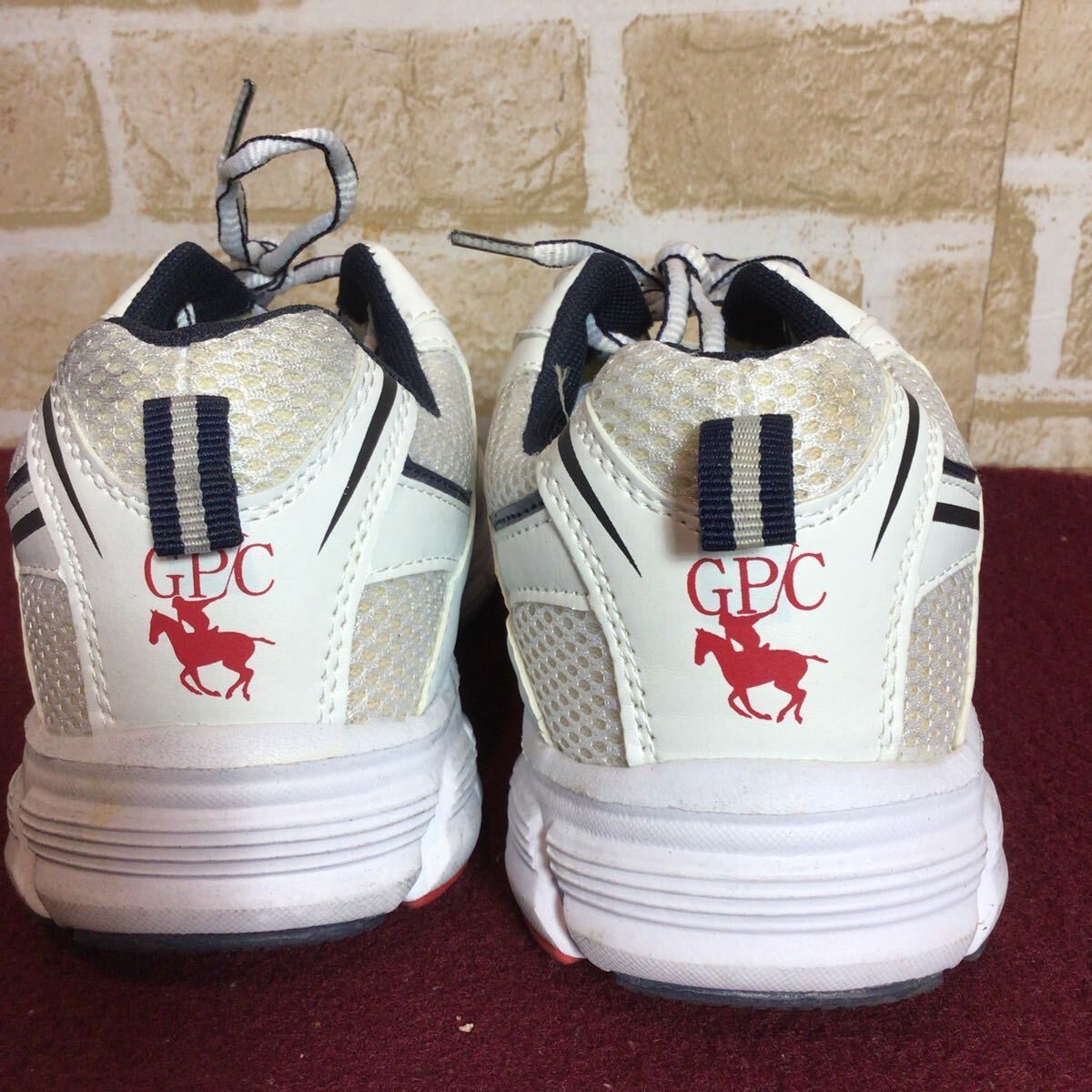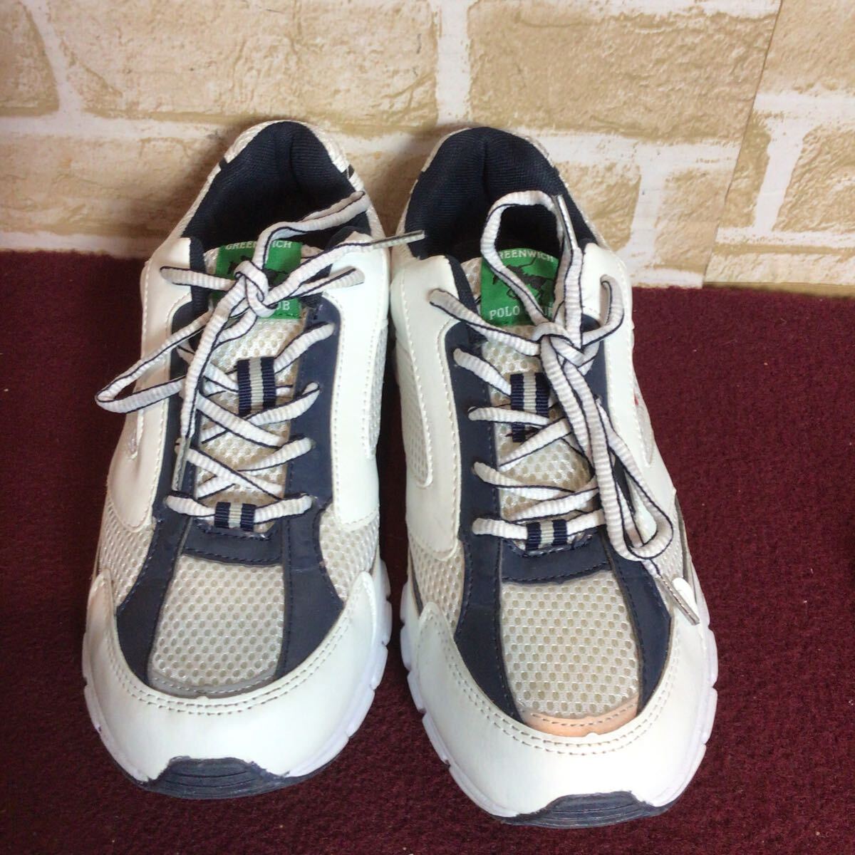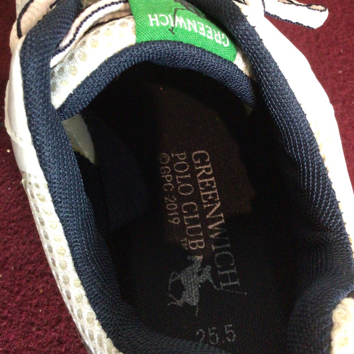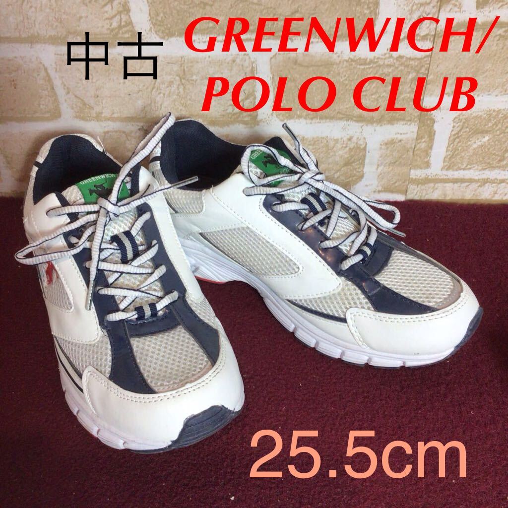 【売り切り!送料無料!】A-362 GREENWICH/ POLO CLUB!スニーカー!白!ネイビー25.5cm!ウォーキング!ランニンが!トレーニング!中古!