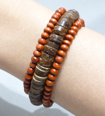 /送料無料 3連 ウッドビーズスパイラルループブレス ビーズ ブレス アクセ ミサンガ 腕輪 装身具 バングル セット セレクト ナチュラル 30