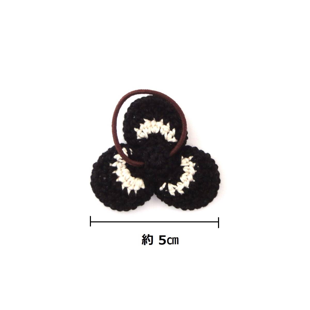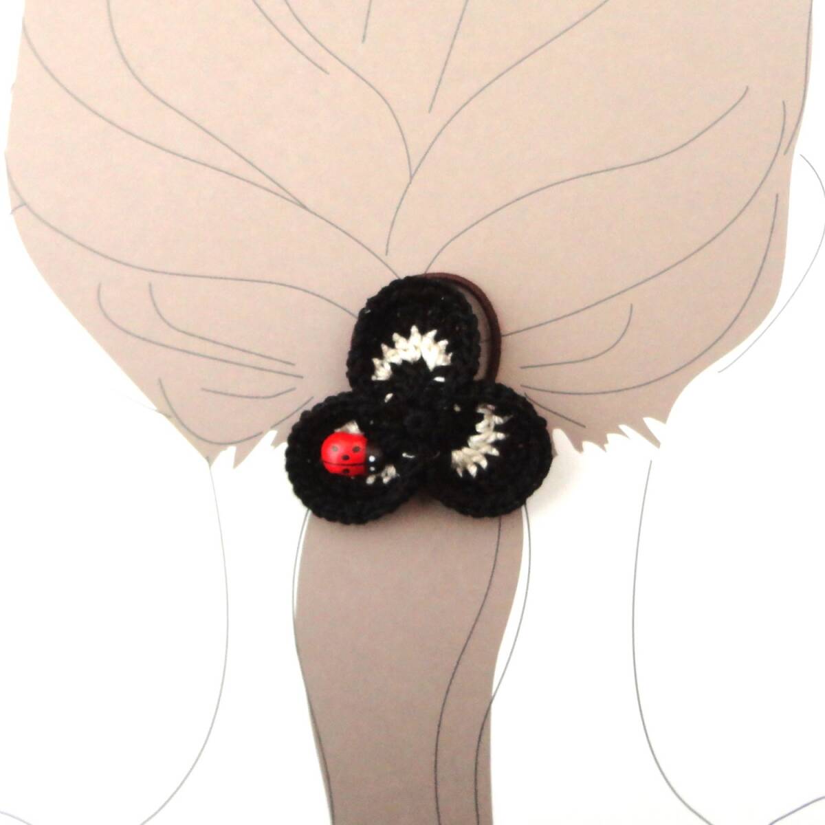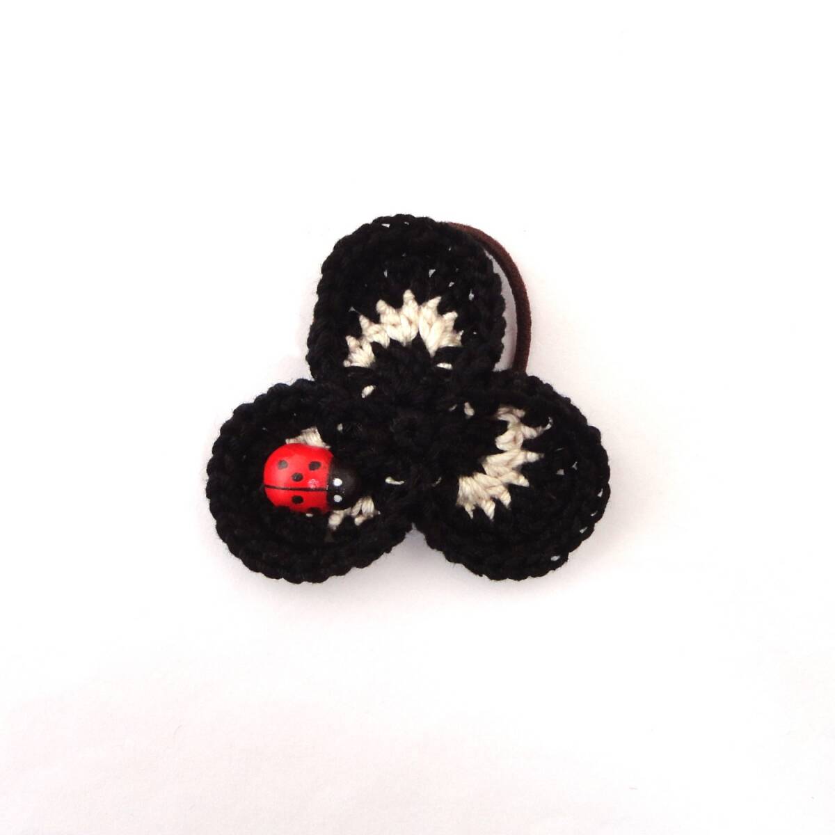 幸せはこぶ?!てんとう虫が可愛いクローバーのヘアゴム*BK*レース編み*ハンドメイド*モノトーン*三葉*シロツメクサ*b530