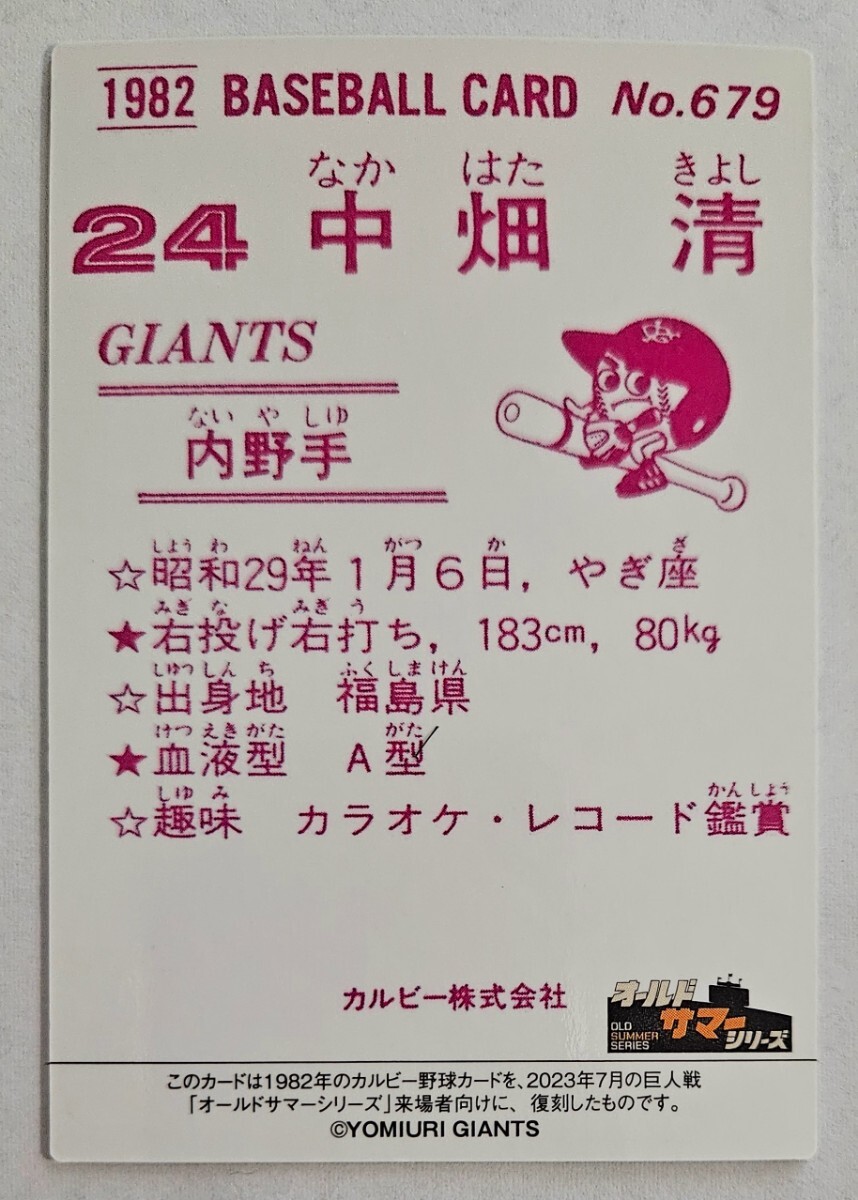 東京ドーム配布 2023年オールドサマーシリーズ OS-3 中畑清 巨人 ジャイアンツ