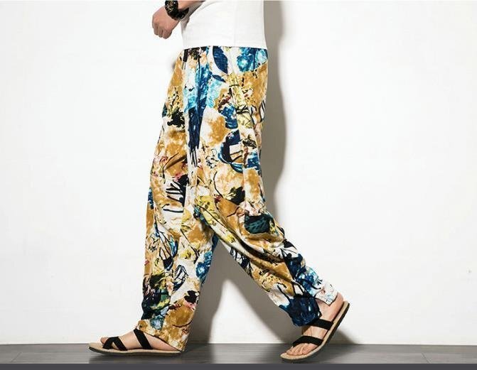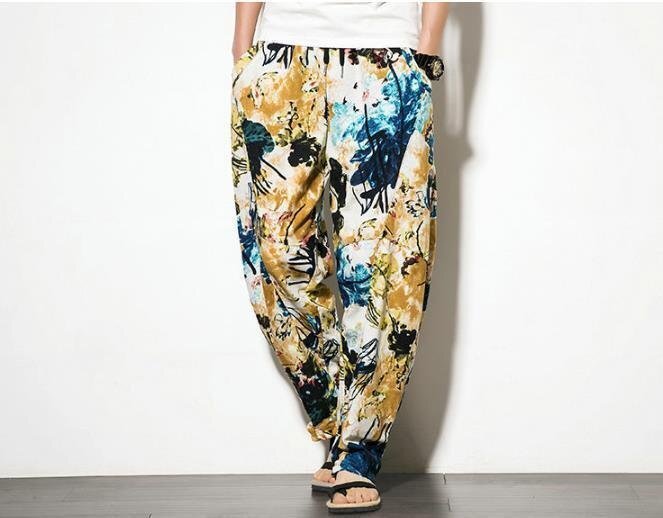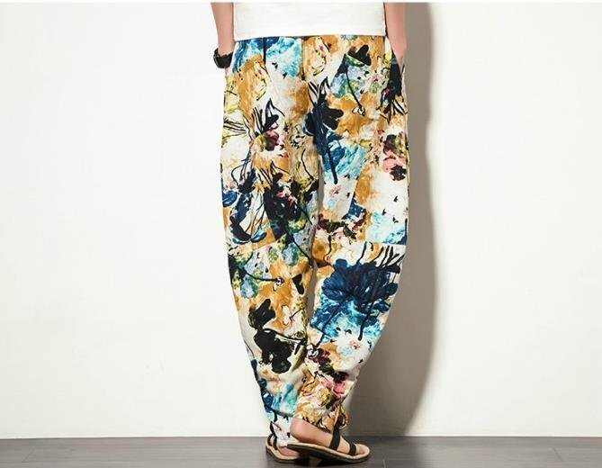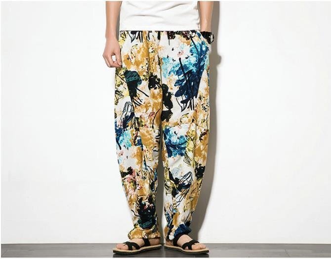LRM474★夏新品 サルエルパンツ 綿麻 ワイドパンツ リネンパンツ メンズ テーパードパンツ 花柄 チノパン ゆったり 大きいサイズ M~5XL選