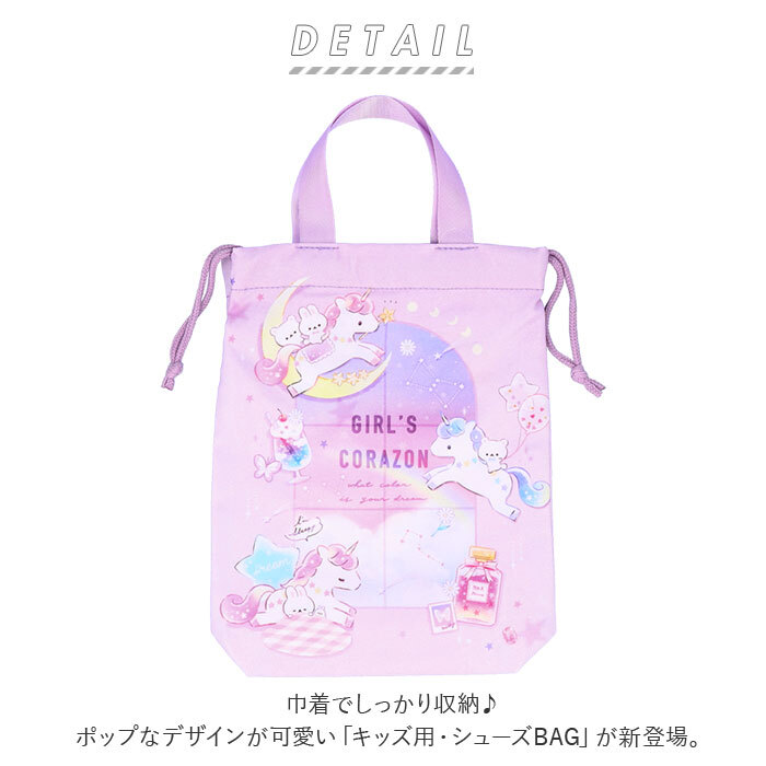 商品説明 | ・・巾着でしっかり収納♪ポップなデザインが可愛い「キッズ用・シューズBAG」が新登場。 ・幼稚園や小学校で履く上履きや、体育館シューズの収納にぴったり。 ・ハンドルを持って手提げにできるのはもちろん、巾着の口をキュッと絞って、レッスンバッグに収納してもOK! ・バッグの内側にはお名前を記入できるネームラベル付き。ラベルが外側から見えないので、プライバシー面でも安心。 ・汚れが気になったら、自宅で気軽にお洗濯ができるのも嬉しいポイント!(※洗濯機をご使用の際は、洗濯ネットをご使用ください。タンブラー乾燥はご使用いただけません。) ・ニュアンスカラーの優しい色合いに、アニマルやハートを可愛らしく散りばめた、オシャレキッズ大満足のデザイン。デニムライクな「サブライム・アドミットインサイド」はボーイズにオススメ! ・お子さまやお孫さまへの、入園・入学のお祝いギフトに最適。 |