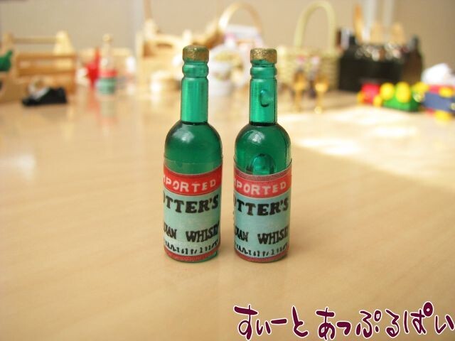ウィスキーボトルのミニチュア、2本セットです!キャビネットやお父さんの書斎にぜひ!高さ約ミリ