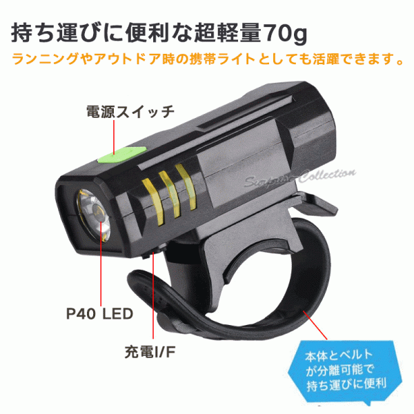 ◎ 自転車用USB LEDヘッドライト(リチウムイオン充電池内蔵)
