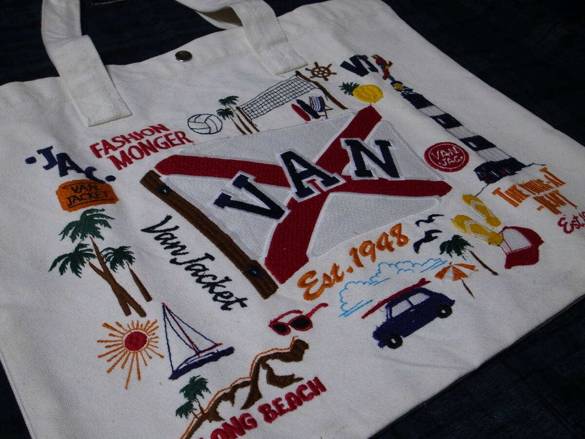 【送料無料】★VAN JAC ヴァンヂャケット★総刺繍 トートバッグ★ホワイト★VAN JACKET