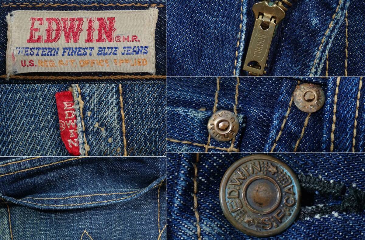 5578/希少EDWIN WESTERN FINEST BLUE JEANS 60~70sビンテージ ジーンズ W81cm●SCOVILLフレア ブーツカット デニムジーパンエドウィン古着