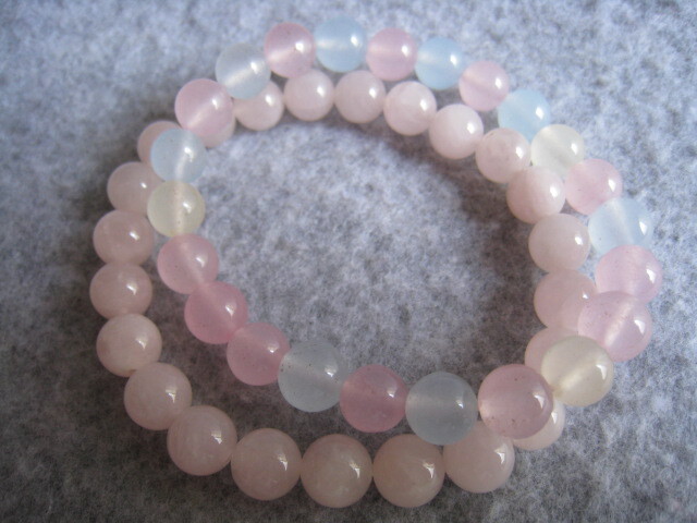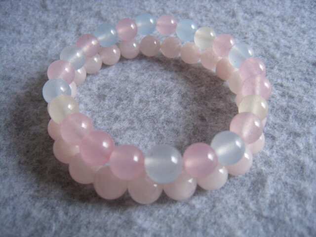 [SAMU]綺麗!!可愛い ピンクと青色 天然水晶珠8mm 二連ブレスレット 新品!