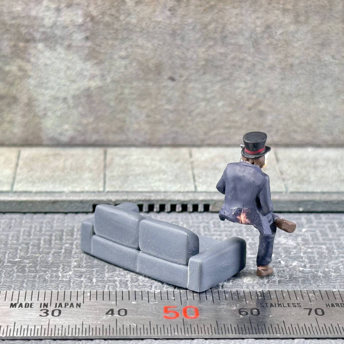 【KS-795】1/64 スケール 銃を持ち座るマスク男性 ソファ セット フィギュア ミニチュア ジオラマ ミニカー トミカ