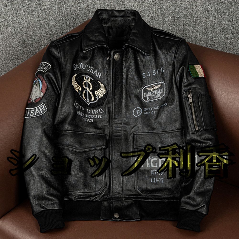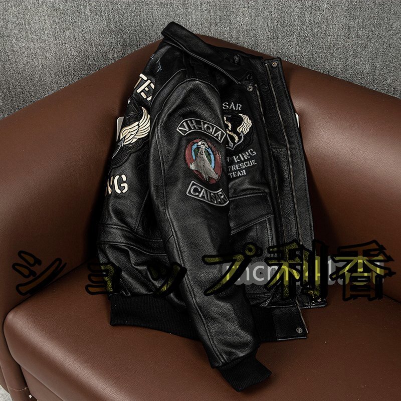 フライトジャケット レザージャケット 牛革 ライダースジャケット 革ジャン カウハイド メンズファッション 刺繍 バイクレザー