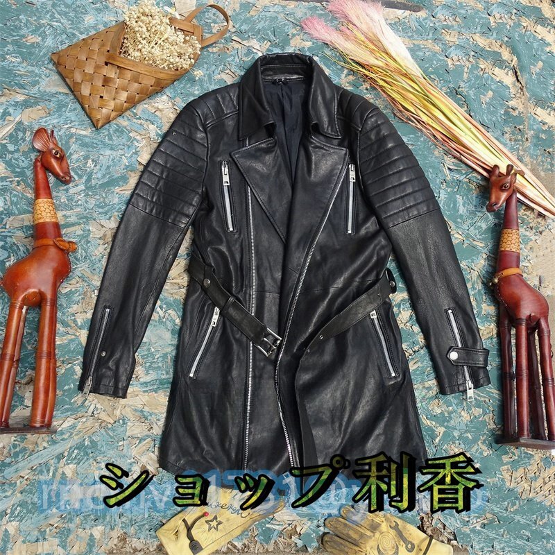 美品■メンズ 革ジャン 最上級 羊革 レザージャケット ライダース バイクウエア トレンチコート 本革 M~2XL