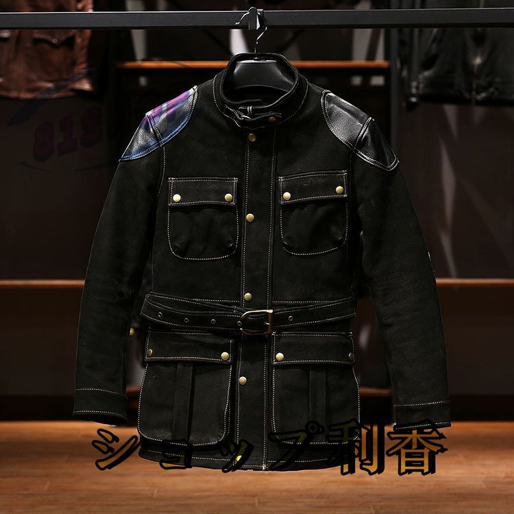 メンズ ジャケット カウハイド  スエード 切り替え  牛革 革ジャン コート