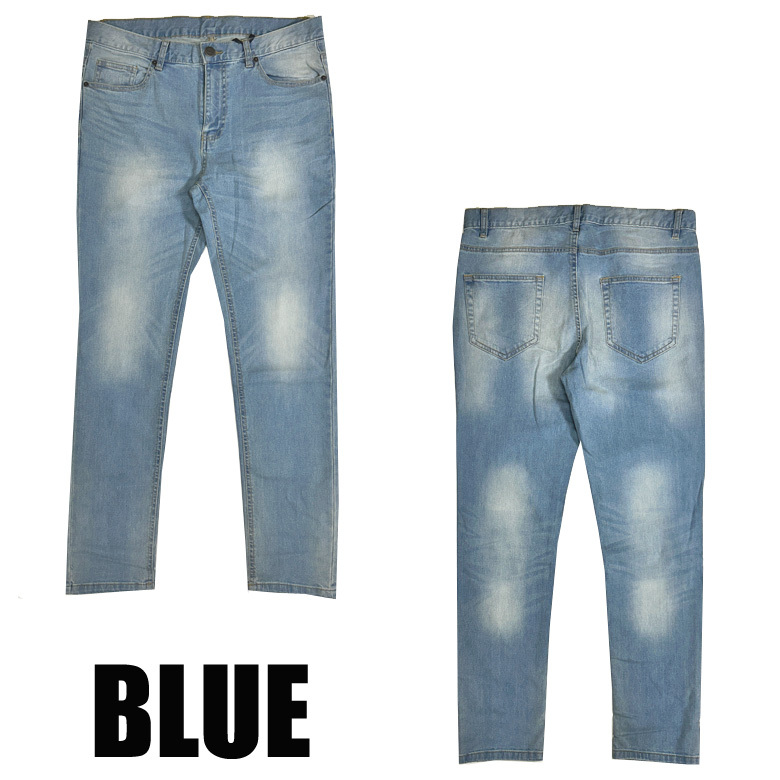 ストレッチ スキニーデニムパンツ ストレッチ ジーンズ キレイめ メンズ 8002-9117a 新品デニム ブルー XL