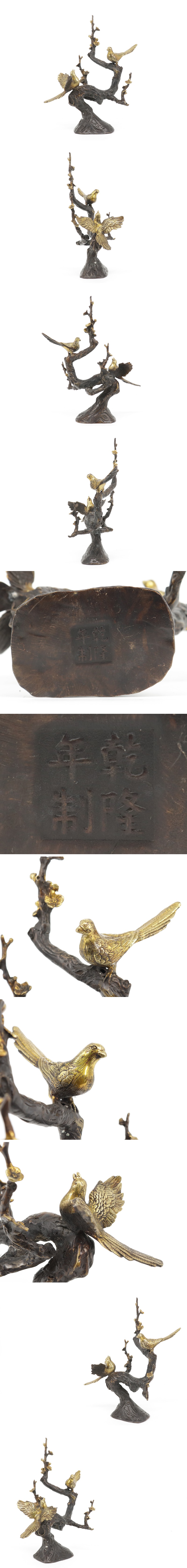煎茶飾り 梅に鶯 置物 乾隆年製 鳥 ウグイス 細密細工 渡金 盆景 A200