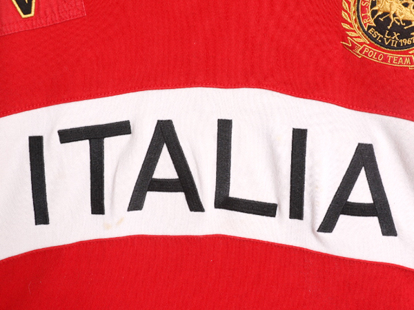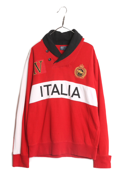 00年代のオールド 人気ブランド POLO RALPH LAUREN のショールカラースウェットです。 素材は、85% COTTON : 15% ACRYLIC 着心地抜群の裏起毛スウェット素材が使用されています。 襟内に補強、肩にはしっかりとしたキルティング補強 脇にも補強とベンチレーション 人気のショールカラー フロントに ITALIA 刺繍 左胸にダブルポニーのエンブレム刺繍 右胸にナンバリングパッチ刺繍入り レッド × ホワイト × ブラック の好配色トリコカラー切替 人気のイタリア代表モデル 本格的ラガーシャツ同様のしっかりとした作り ラガーシャツの要素をスウェット素材に落とし込んだ ラルフローレンらしい細部までこだわりを感じる 他ではまったく見かけない唯一無二のグッドデザイン これだけで様になる、お勧めの商品です。 |