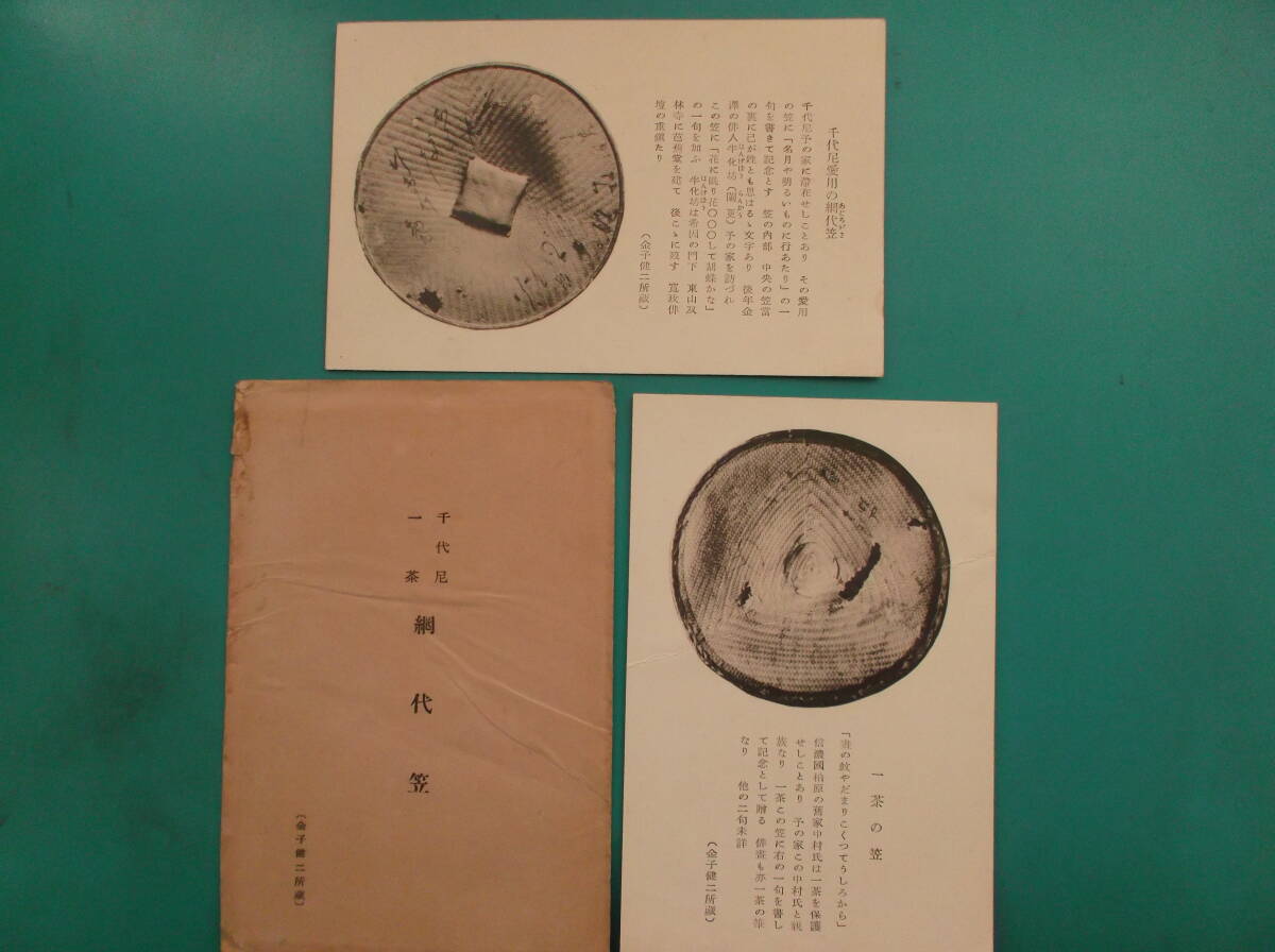 ①組    千代尼 一茶 網代笠    千代尼愛用の網代笠 名月や明るい物に・・・    一茶の笠 晝の蚊やだまりこくって・・・    金子健二所蔵