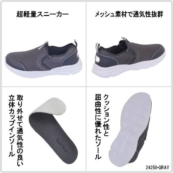 24250 新品 スリッポン スニーカー グレー 26.0cm 運動靴 作業靴 軽量 3E 幅広 通学 メッシュ素材 メンズ