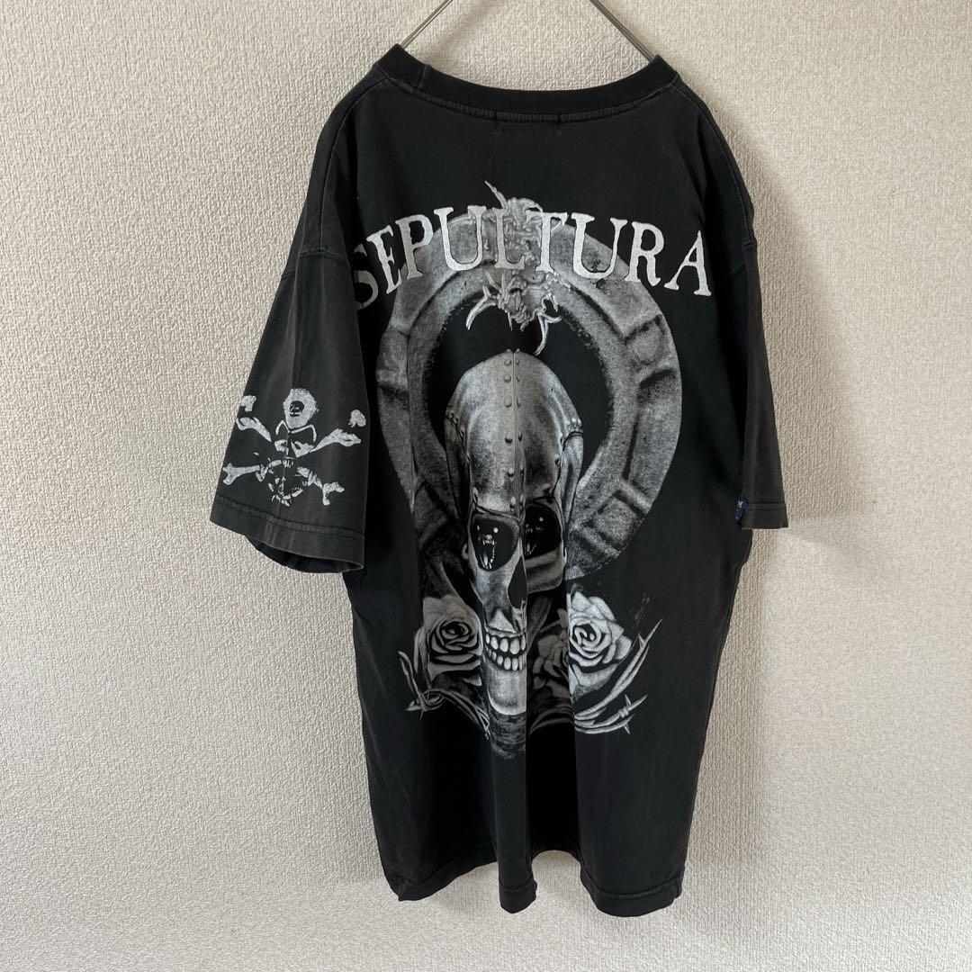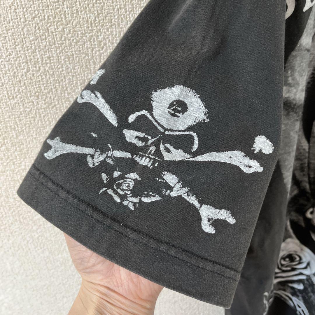 U3 ドクロプリントtシャツ 半袖 バラ 黒 Lメンズ
