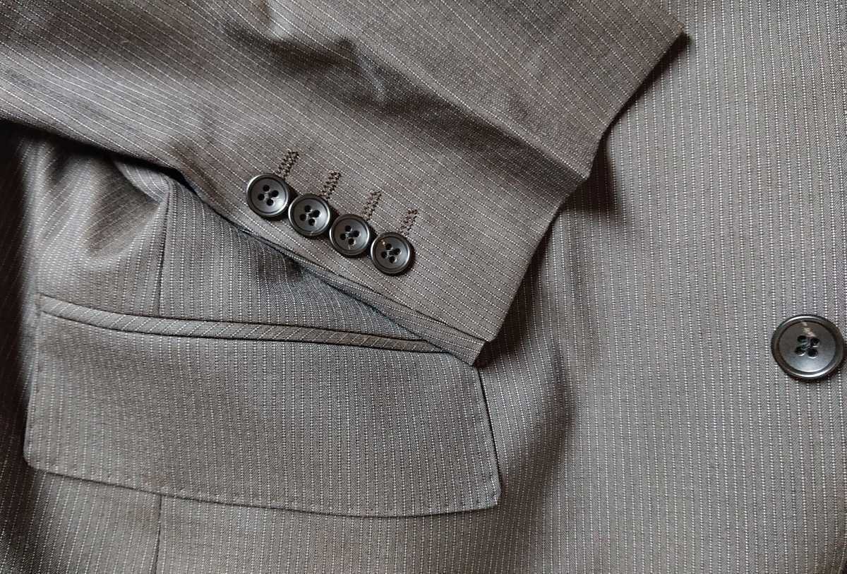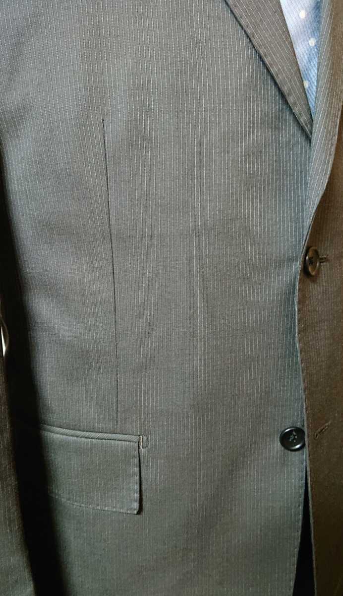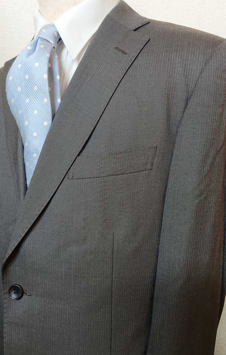 春夏2つボタンスーツ サイズ⇒A8(86) ジャケット⇒着丈77cm、肩幅48cm、袖丈64cm、チェスト114cm パンツ⇒ウエスト86cm、ワタリ幅37cm、裾幅23cm、股下96cm ※測り方による誤差は生じます。 色・柄⇒茶系グレー・ストライプ 表地⇒毛100% 裏地(背抜き)⇒ポリエステル100% 袖裏⇒キュプラ100% ベント⇒サイドベンツ ステッチ⇒入り 袖ボタン⇒4個 台場⇒切台場 タック⇒ノータック 商品状態⇒新品 着用季節⇒春夏 R5-200151XA |