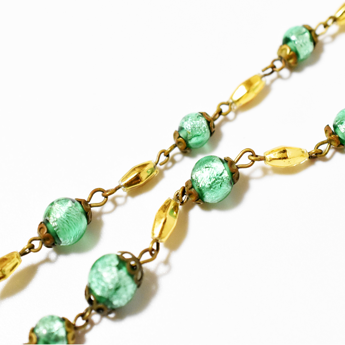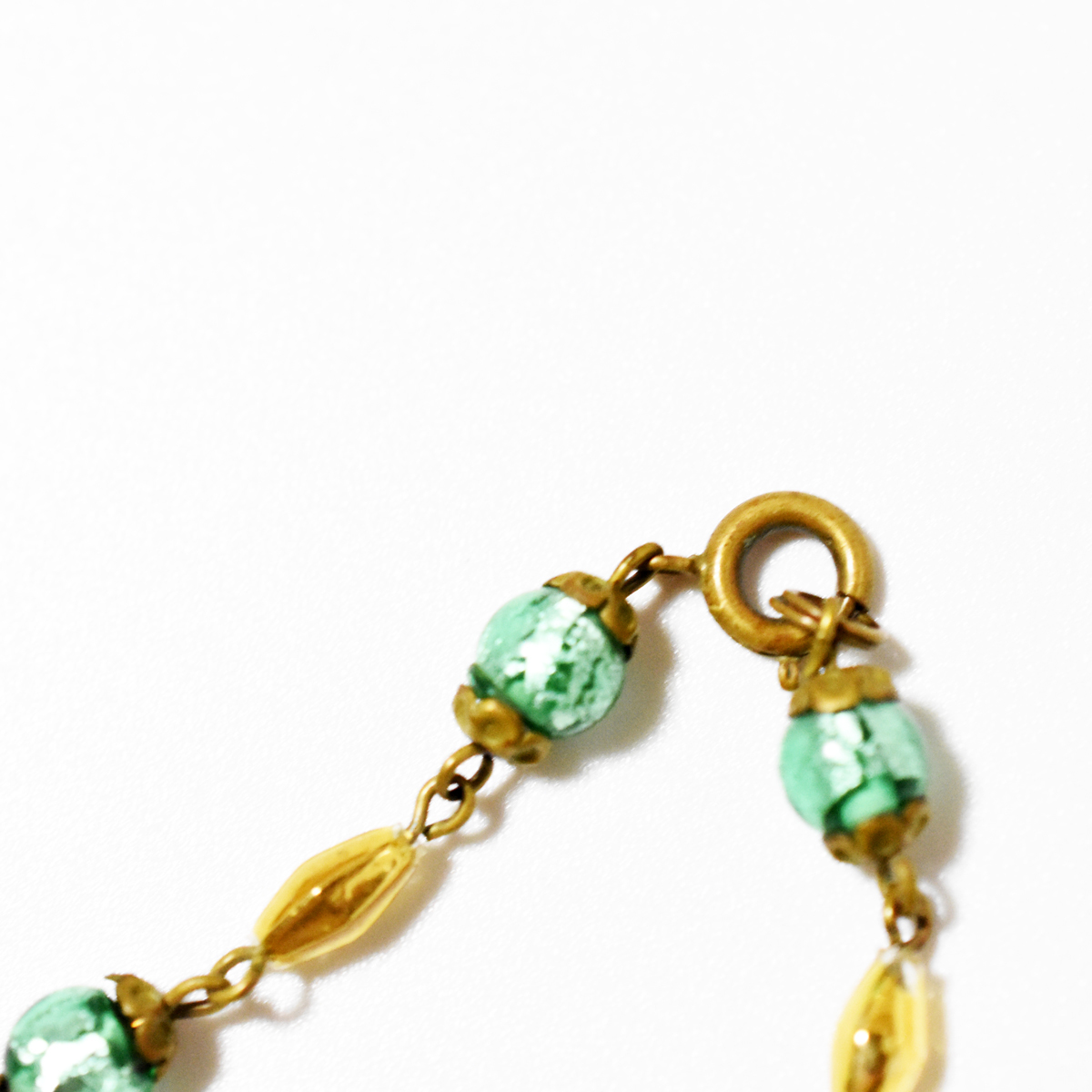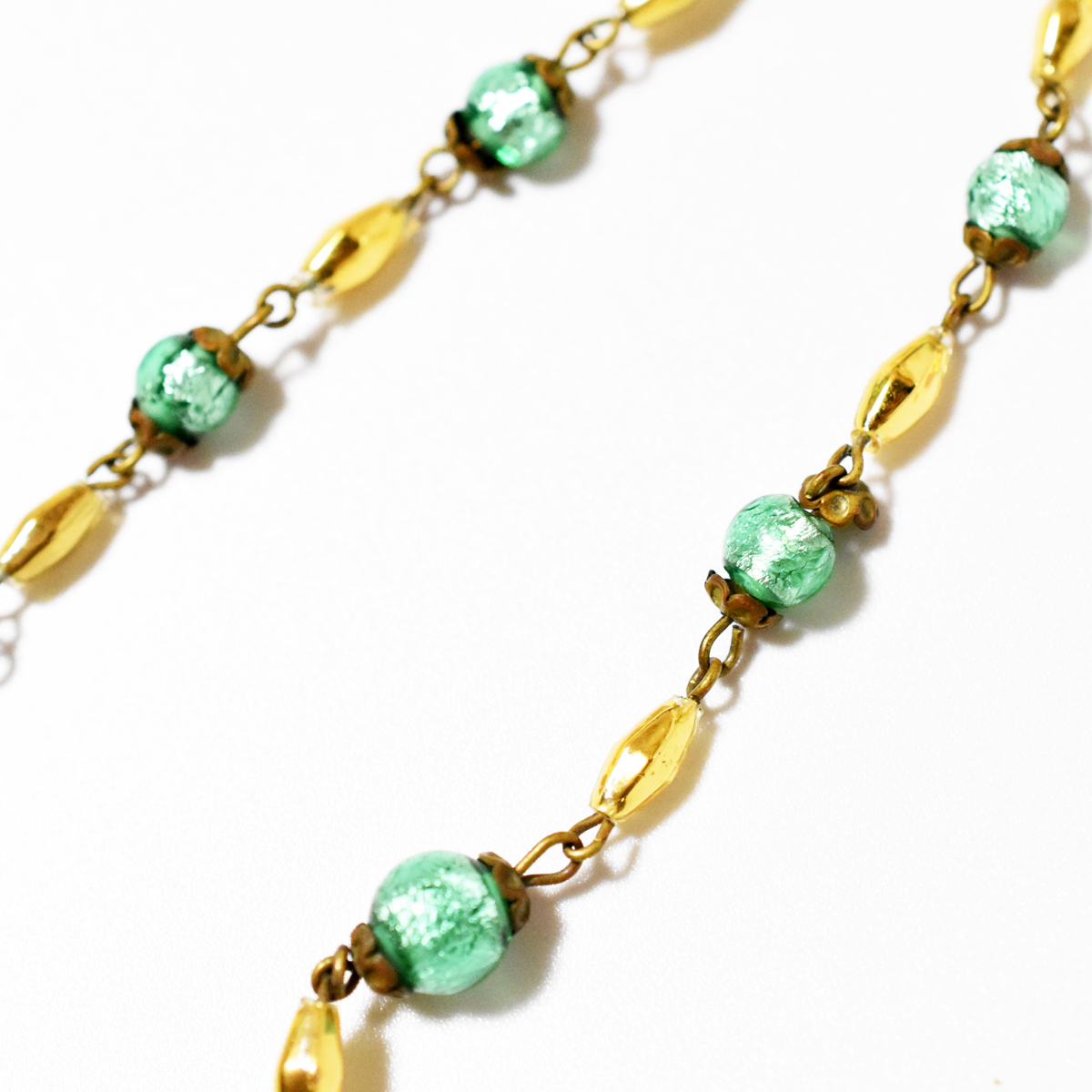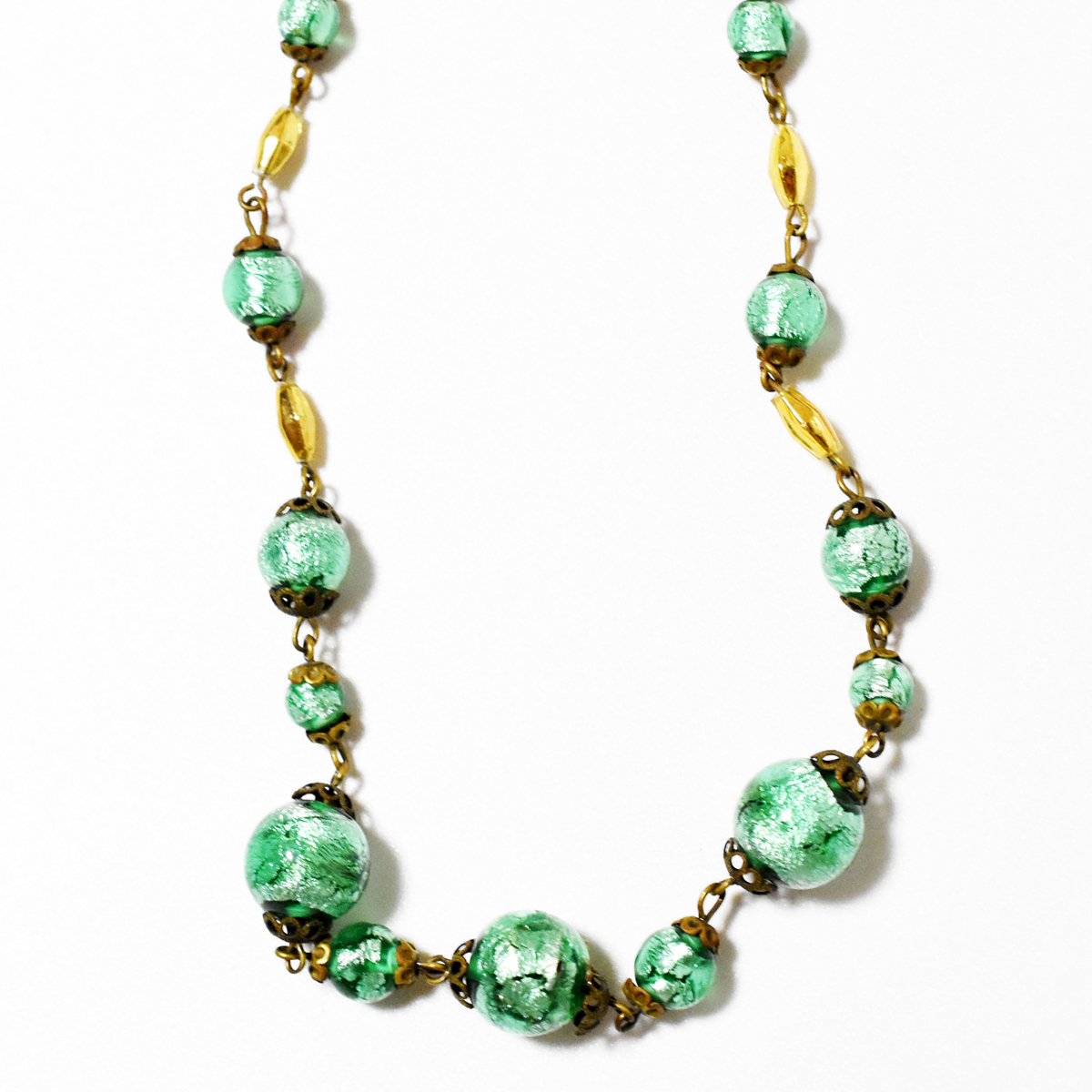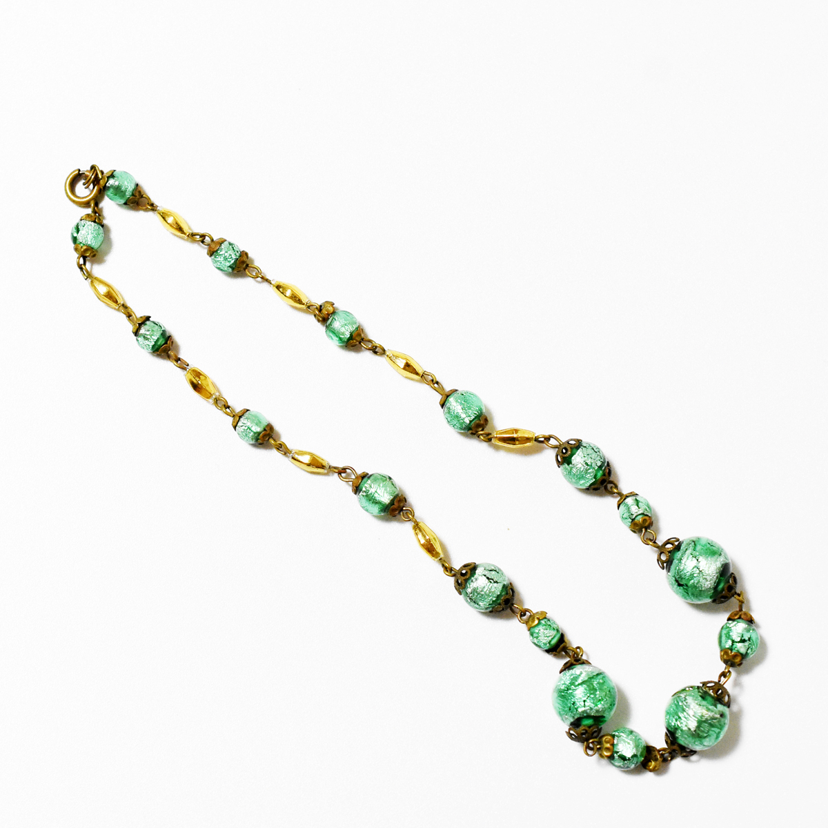 グリーンカラーの輝きが美しいガラスビーズが使用されたヴィンテージネックレス。