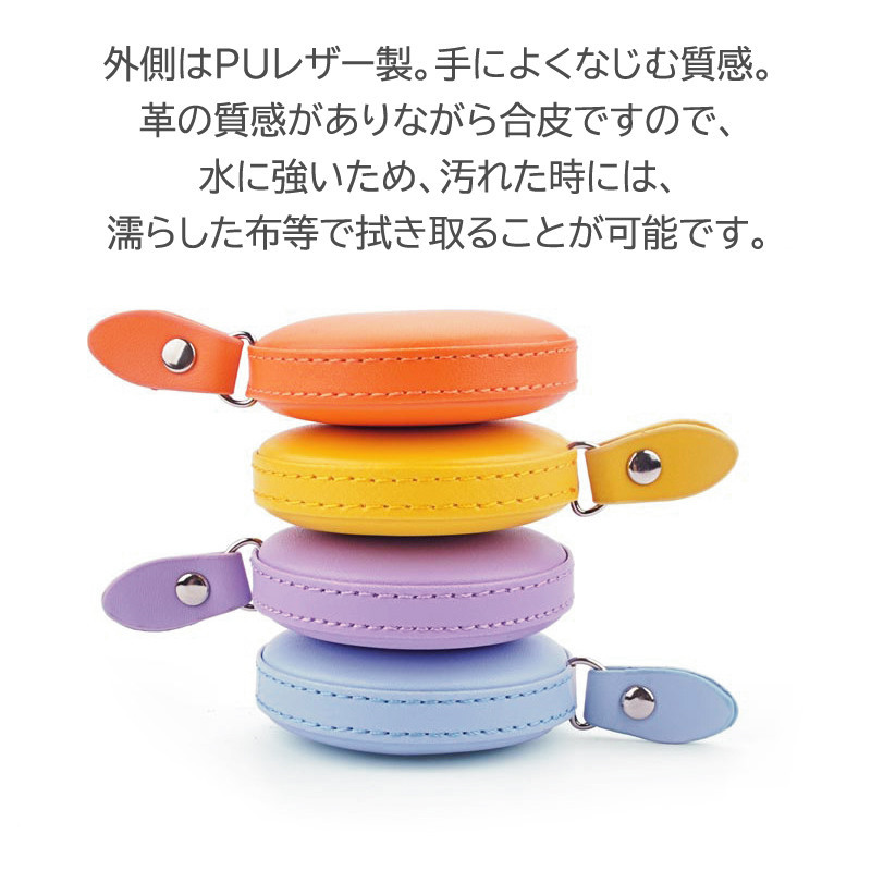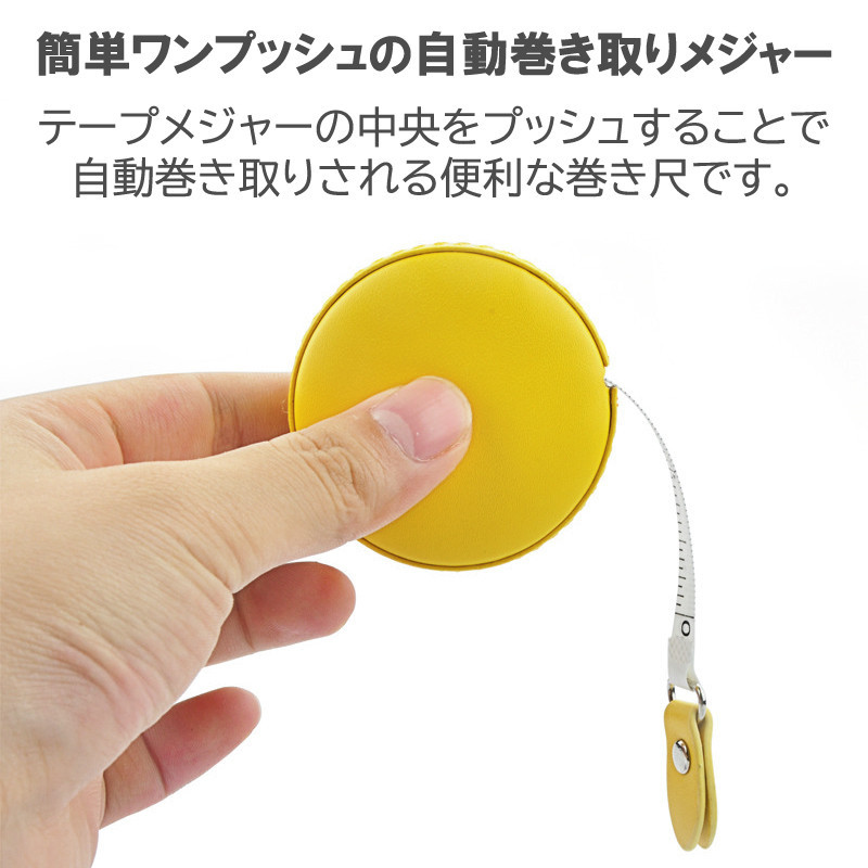 168 メジャー レザー ロールメジャー 巻き尺 1.5m 両面 サイズ はかり おしゃれ かわいい コンパクト 自動 巻きとり 手芸 裁縫