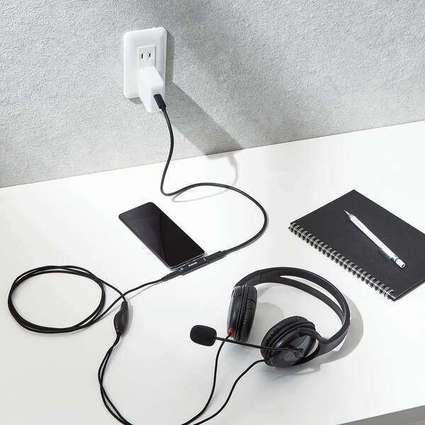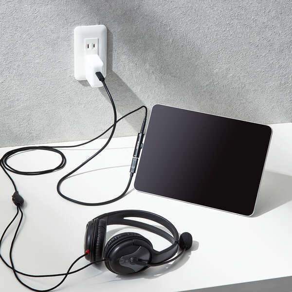 | 対応機種 | 音声出力に対応したUSB Type‐C端子搭載のパソコン、タブレット、スマホ等/ CTIA方式φ3.5mm4極ステレオミニ端子を搭載した イヤフォン、ヘッドフォン/パソコン、タブレット、スマホなどの 本体充電が可能なUSB Power Delivery対応USB Type-C(TM)電源アダプタ |