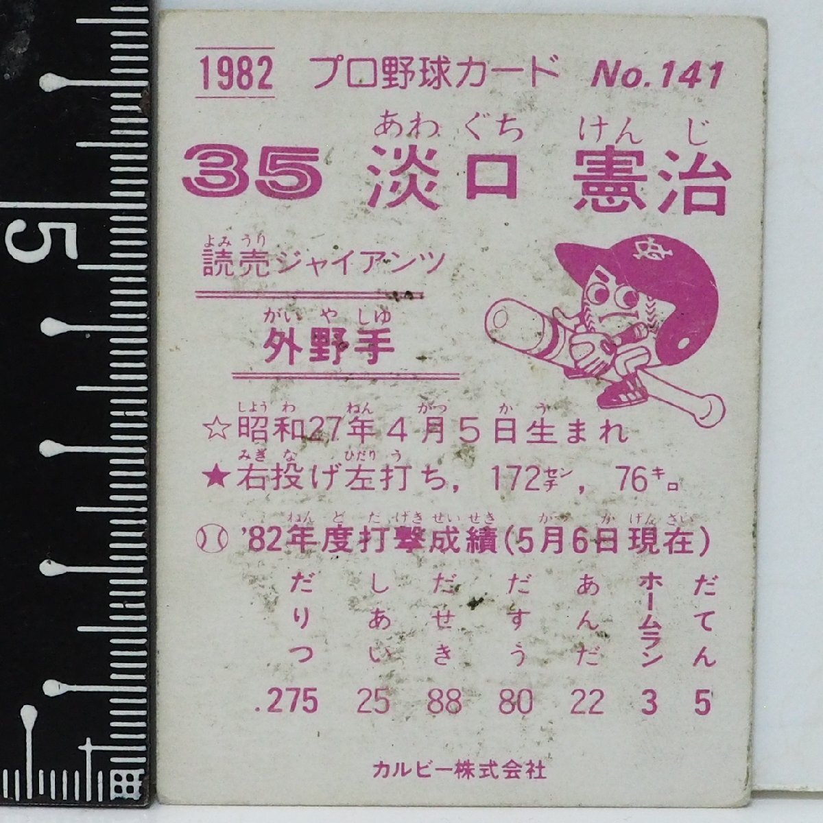 82年 カルビー プロ野球カード No.141【淡口 憲治 外野手 読売ジャイアンツ 巨人】昭和57年 1982年 Calbee おまけ 食玩 BASEBALL【中古】