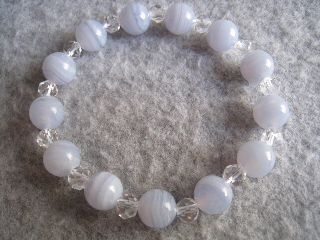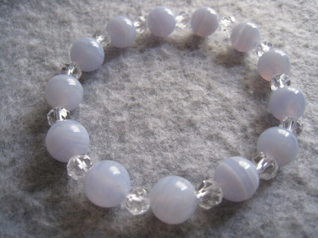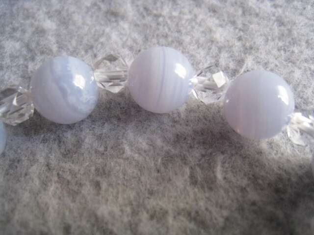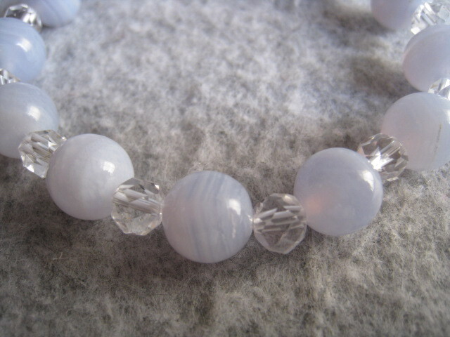 ◇ 石質 天然ブルー瑪瑙メノウ珠10mm 天然クリスタル珠5.5mm 長さ約18㎝ 総重量約20g