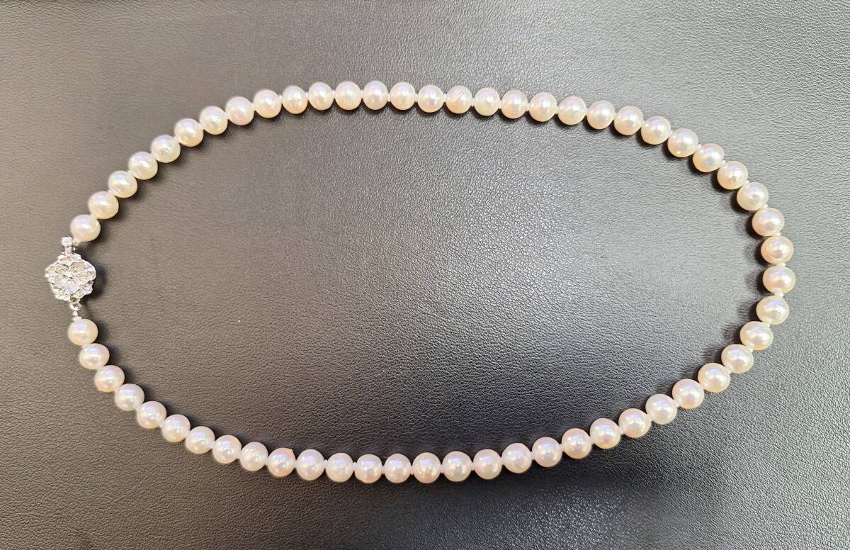 ◆ (美品)パールネックレス 6.5㎜~6.9㎜ 42㎝ シルバー金具 ◆