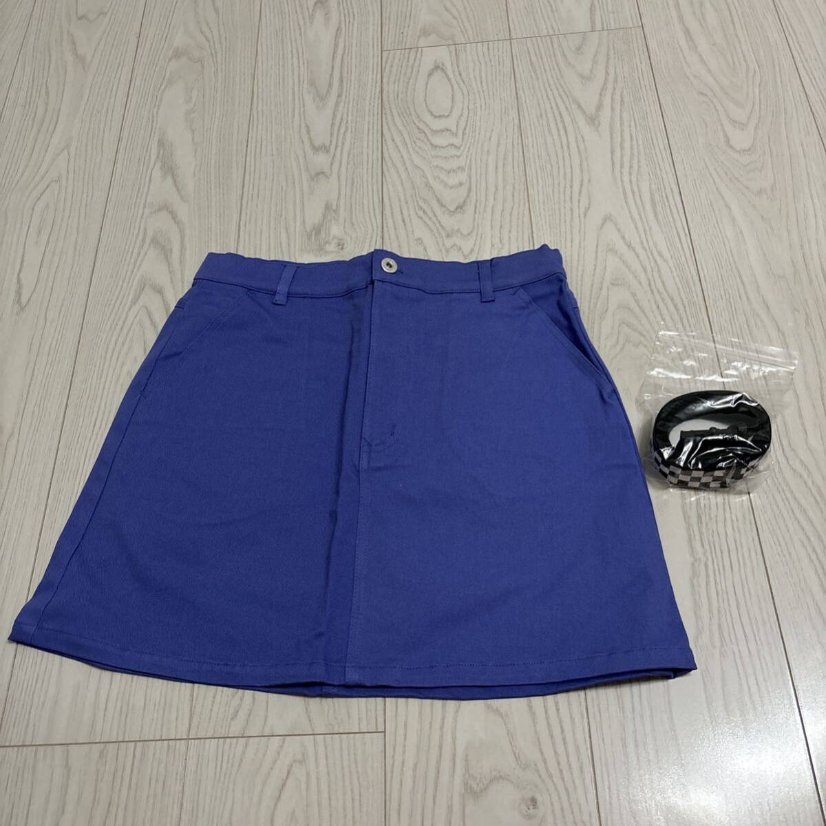 未使用●ベルト 付き Candy Stripper キャンディストリッパー ブルー ミニ 台形 スカート/青/タイト/ミニスカ/ブランド/レディース★1146-4
