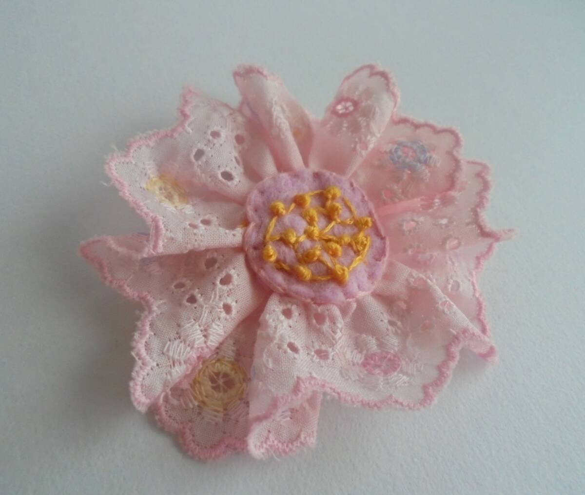 ハンドメイド アップリケ お花 綿レース にペンテックス フェルト に刺繍