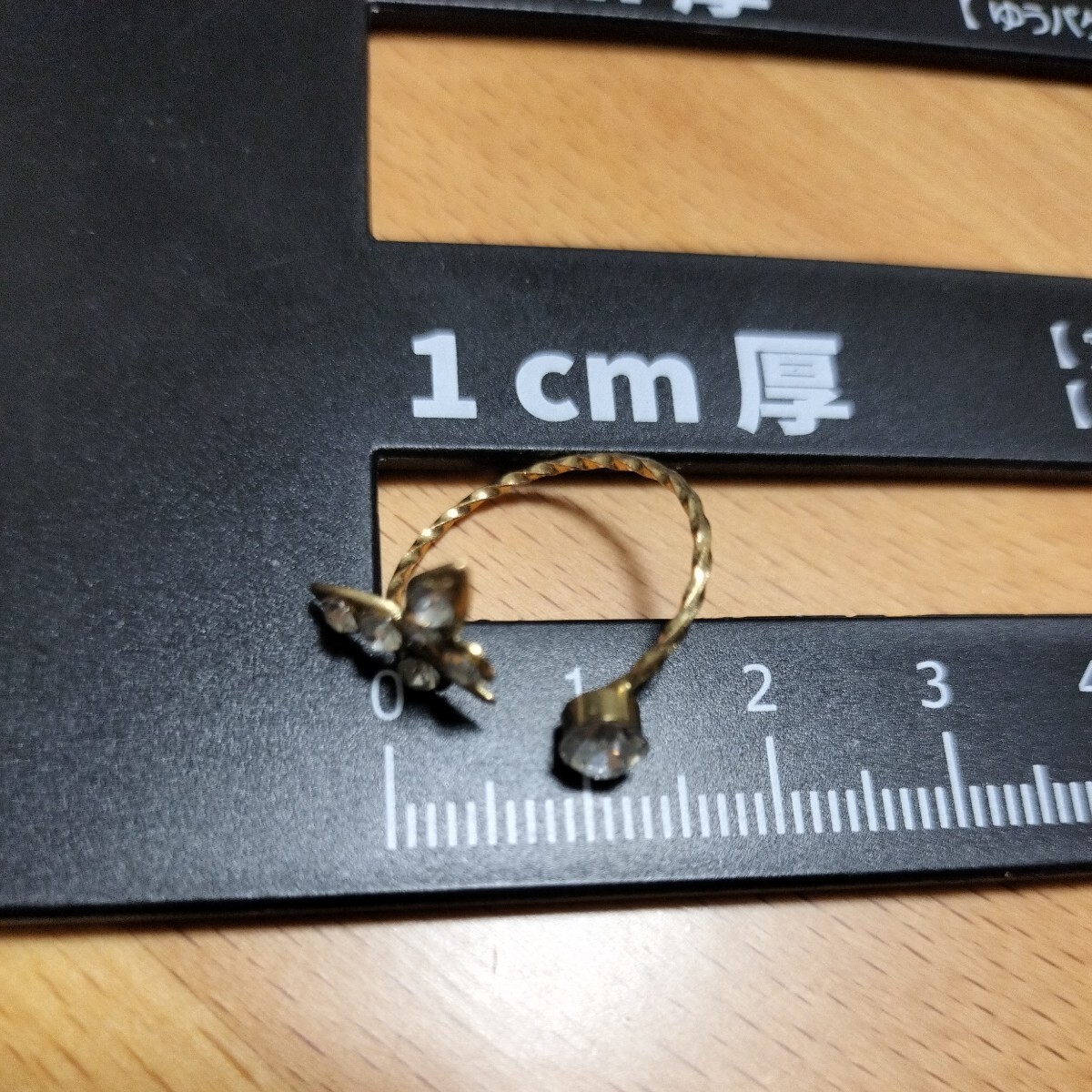 金色の土台に蝶々と大きめのストーンがあしらわれた可愛らしいデザインです。