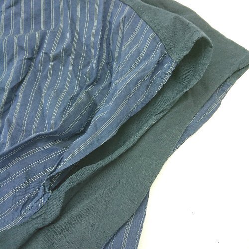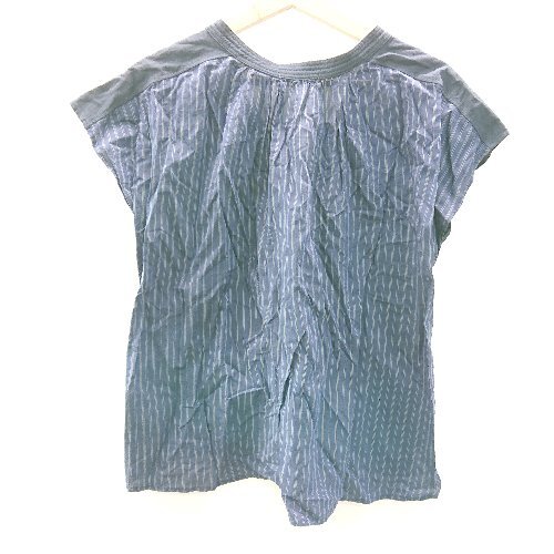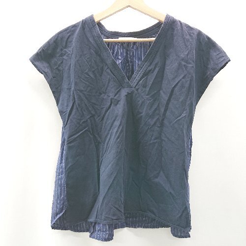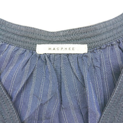 ◇ MACPHEE マカフィー Vネック 後ろストライプ フレンチスリーブ カットソー サイズS ネイビー系 レディース E