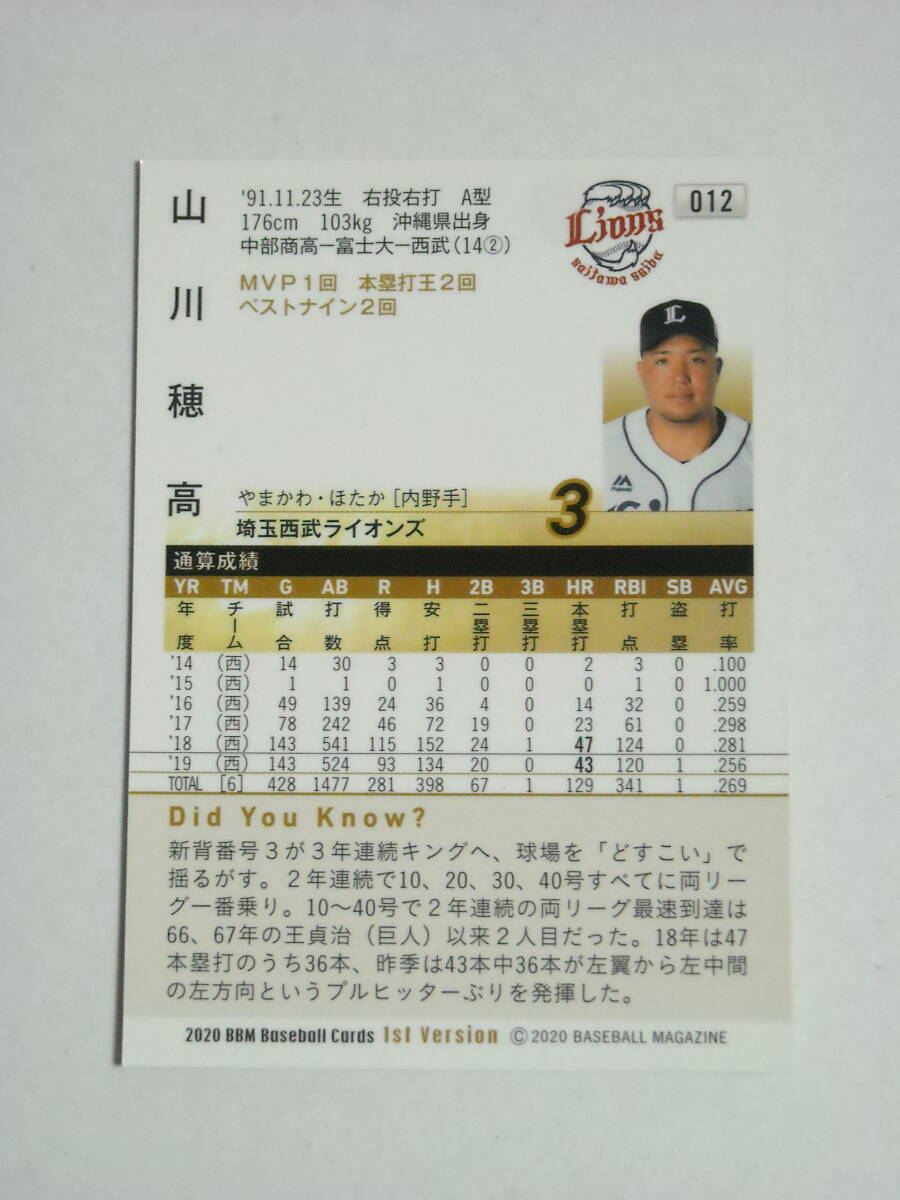 山川穂高 #12 BBM 2020 埼玉西武ライオンズ 沖縄県那覇市 県立中部商業高等学校卒 通算OPS906