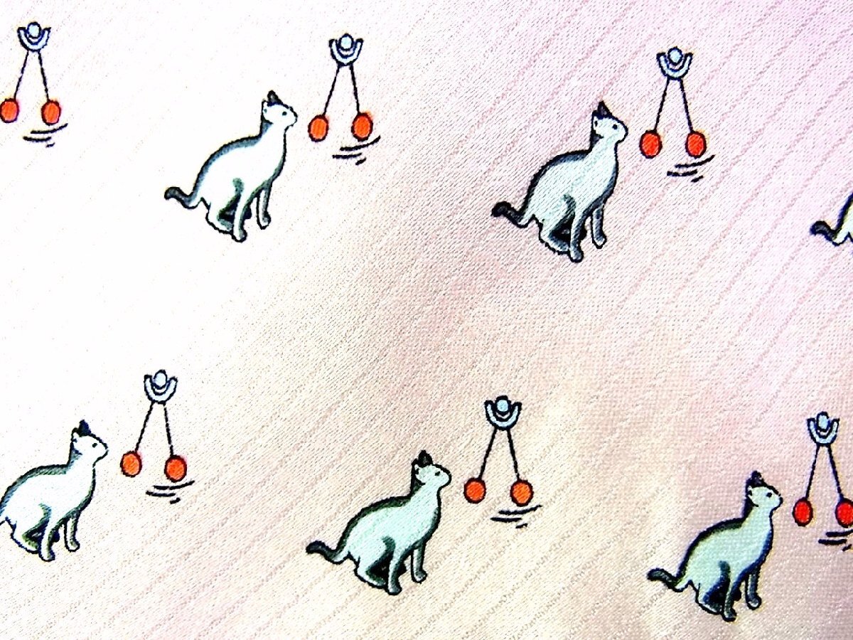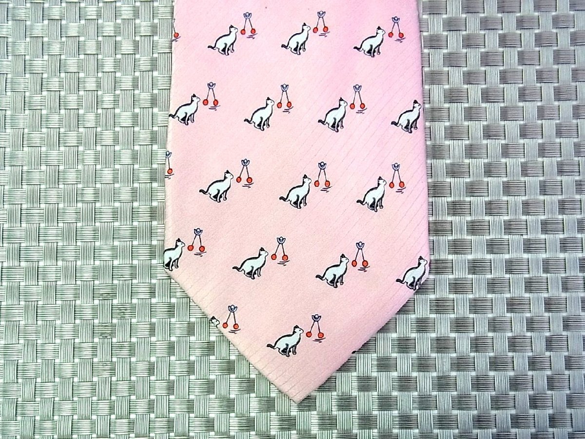 DC01703♪良品【キャラ柄】シルク100%「猫 ねこ 動物 クラッカー」ネクタイ♪