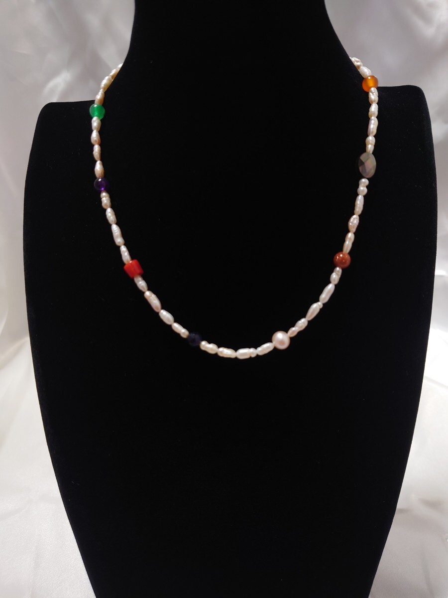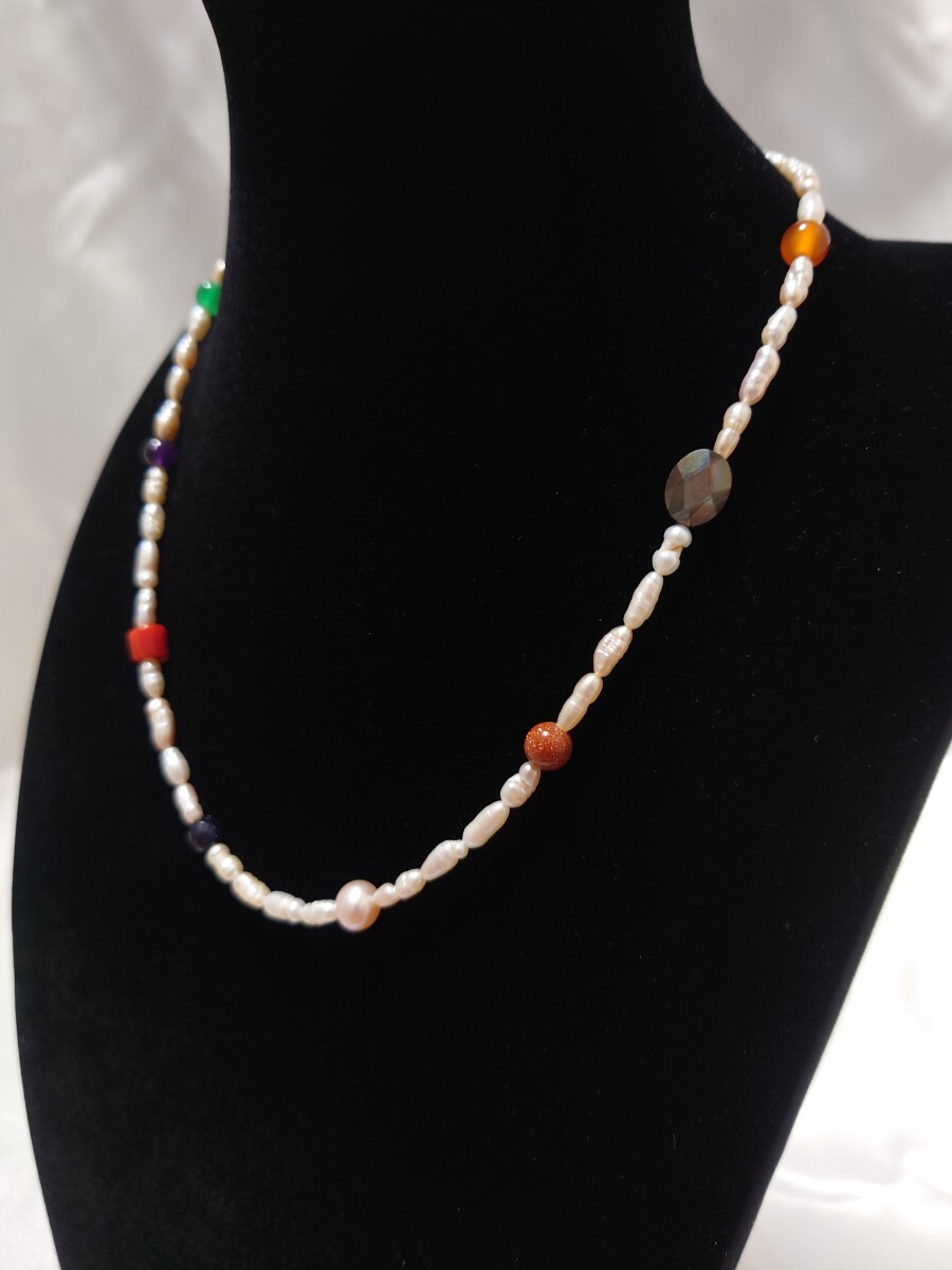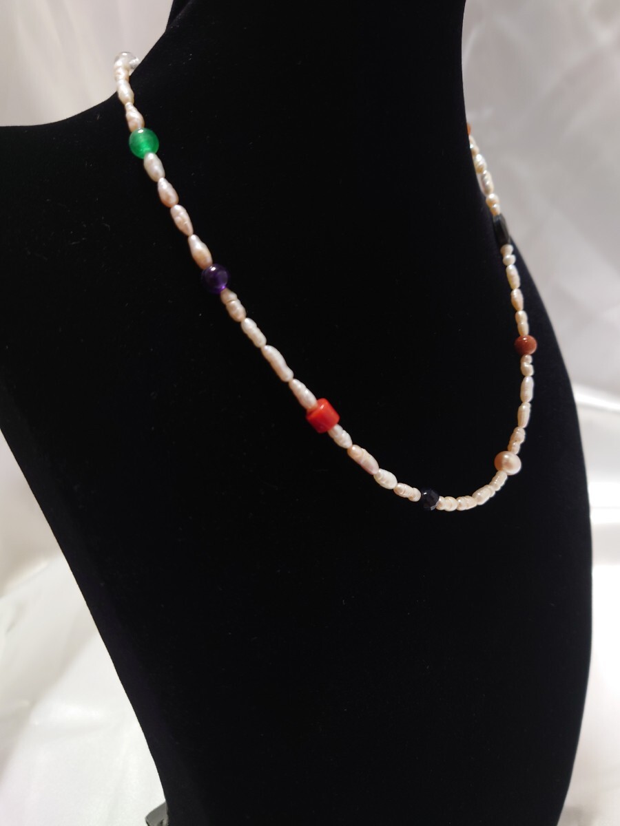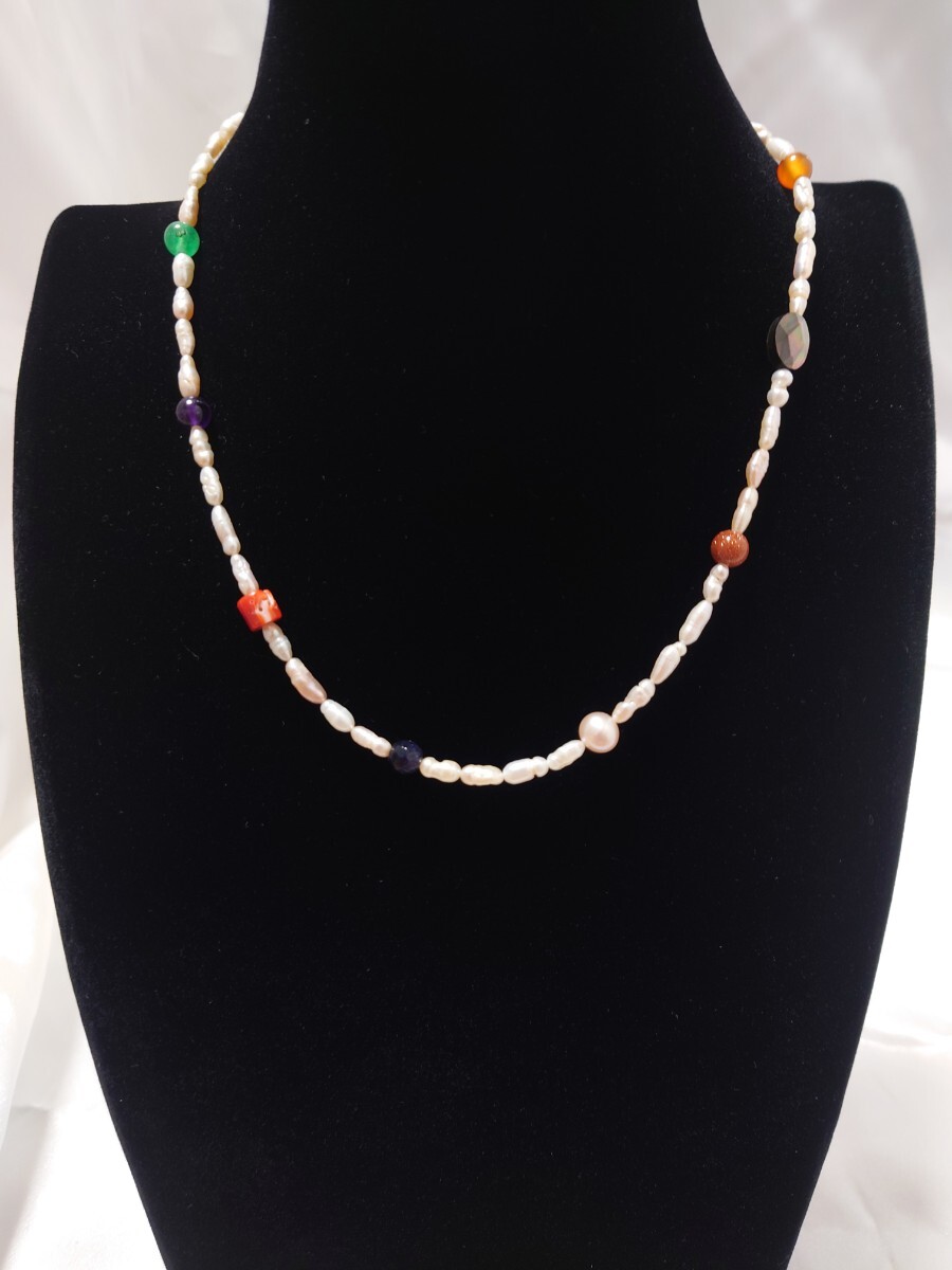淡水真珠、瑪瑙、アメジスト、水晶、茶金石
