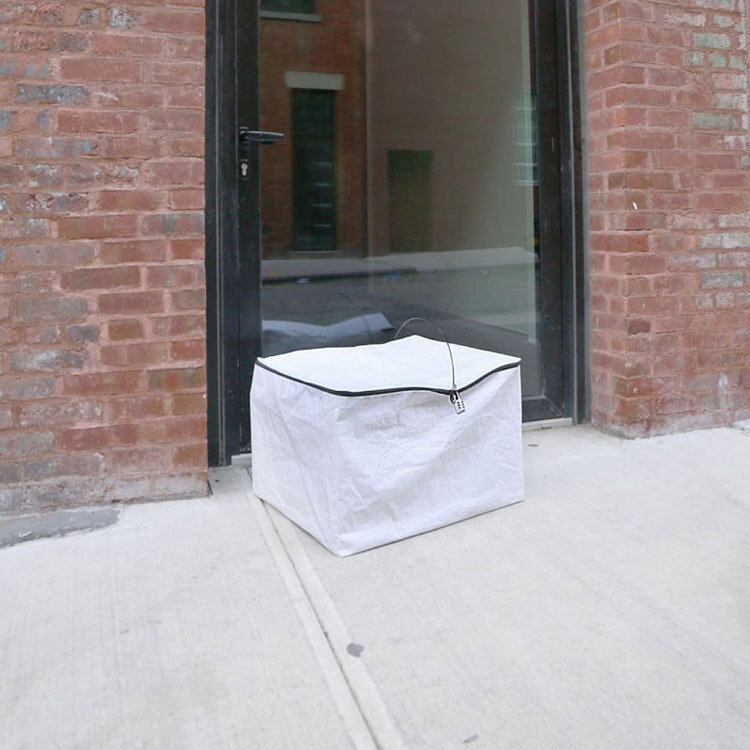 荷物を不在時でも受け取ることが出来て、受け取るまでの保管にも安心な防水・盗難防止機能がついた宅配ボックス用防水バッグです。