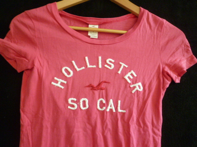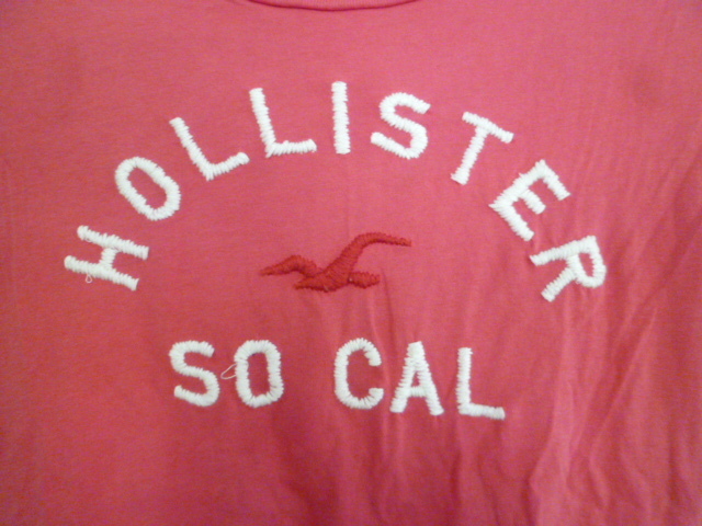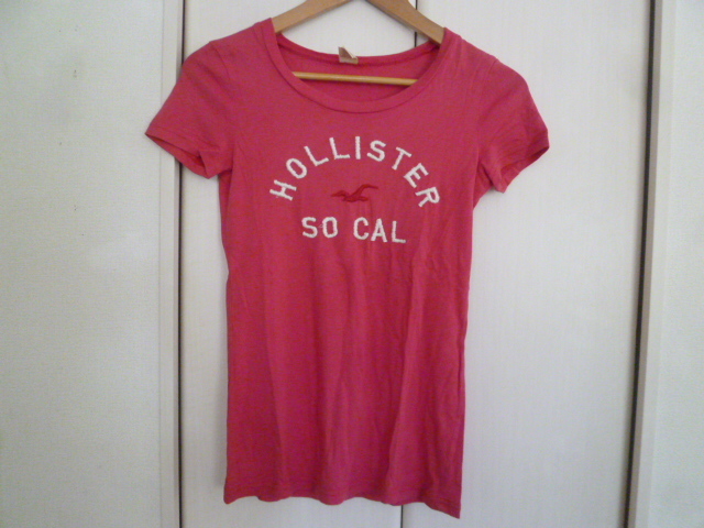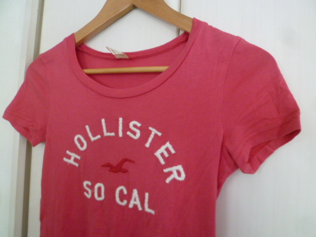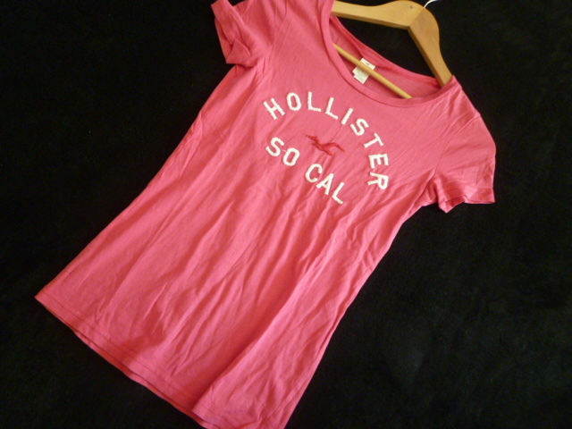HOLLISTER/ホリスター◇濃いピンク刺しゅうロゴTシャツトップスS◇半袖◇a71