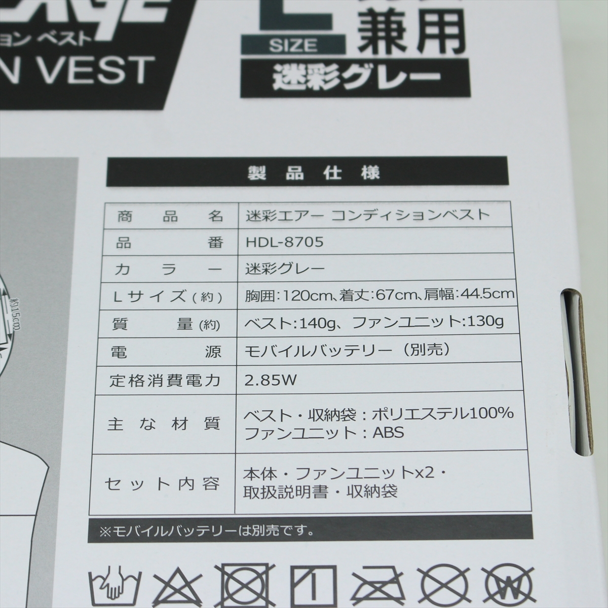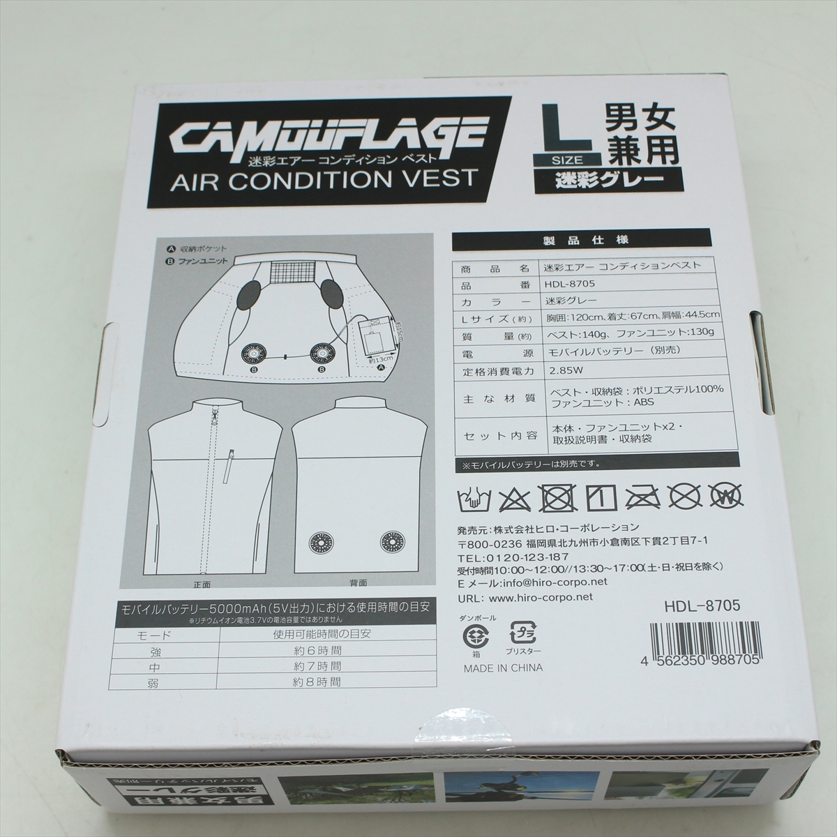 商品名 | HIRO ヒロ HDL-8705 迷彩エアーコンディションベスト Lサイズ 迷彩グレー モバイルバッテリー別売 |