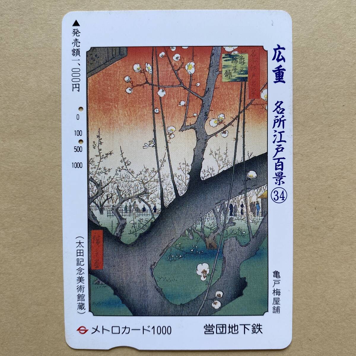 【使用済】 浮世絵メトロカード 営団地下鉄 東京メトロ 歌川広重 名所江戸百景34 亀戸梅屋舗