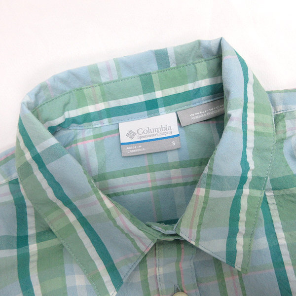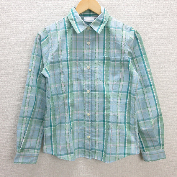 G■コロンビア/Columbia 長袖シャツ/チェック柄/シアサッカー【S】水色系/men's/2【中古】■